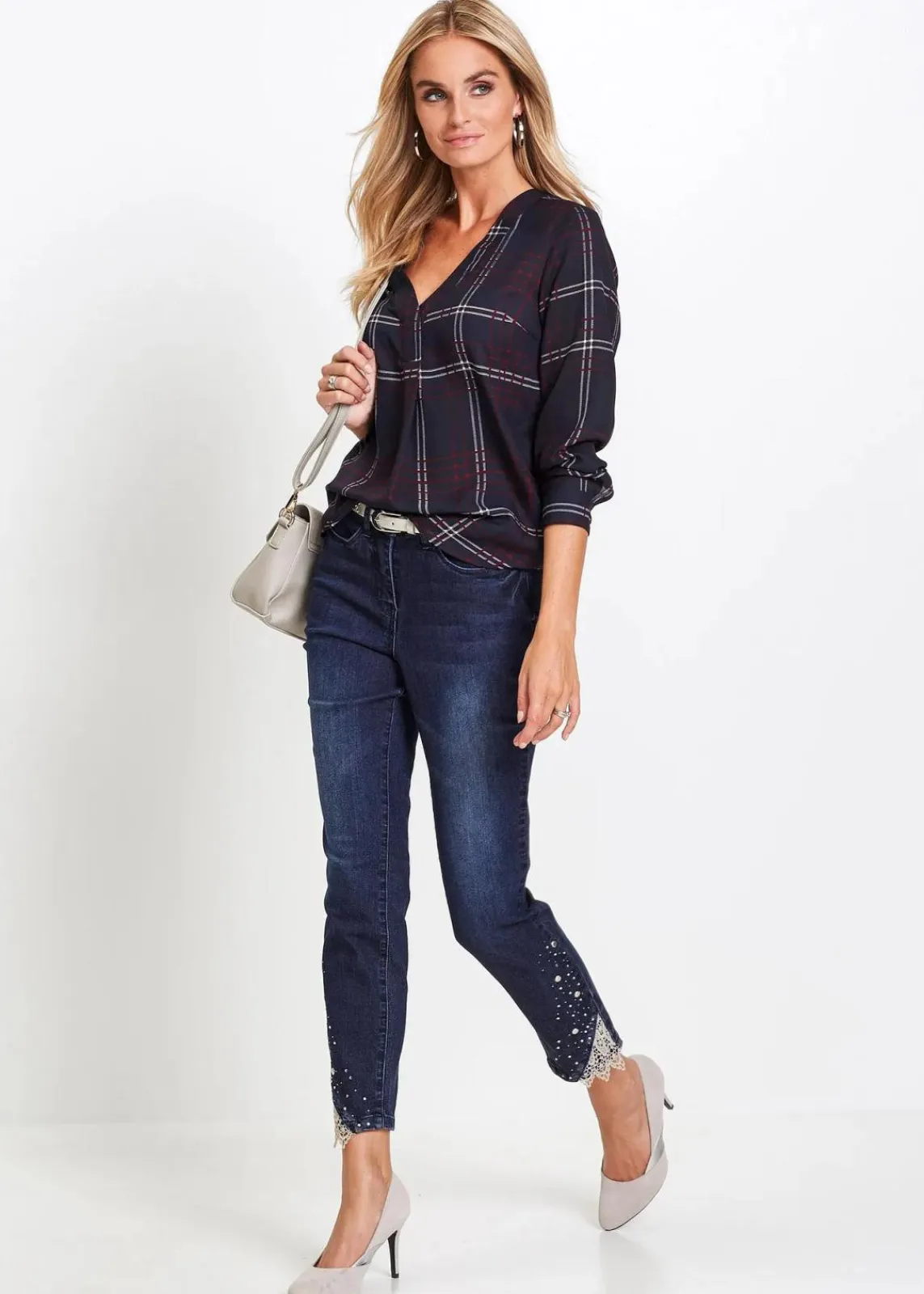 Leicht transparente Tunika mit abgerundetem Saum, Länge von ca. 64 cm (Gr.36) bis ca. 73 cm (Gr.54), maschinenwaschbar,