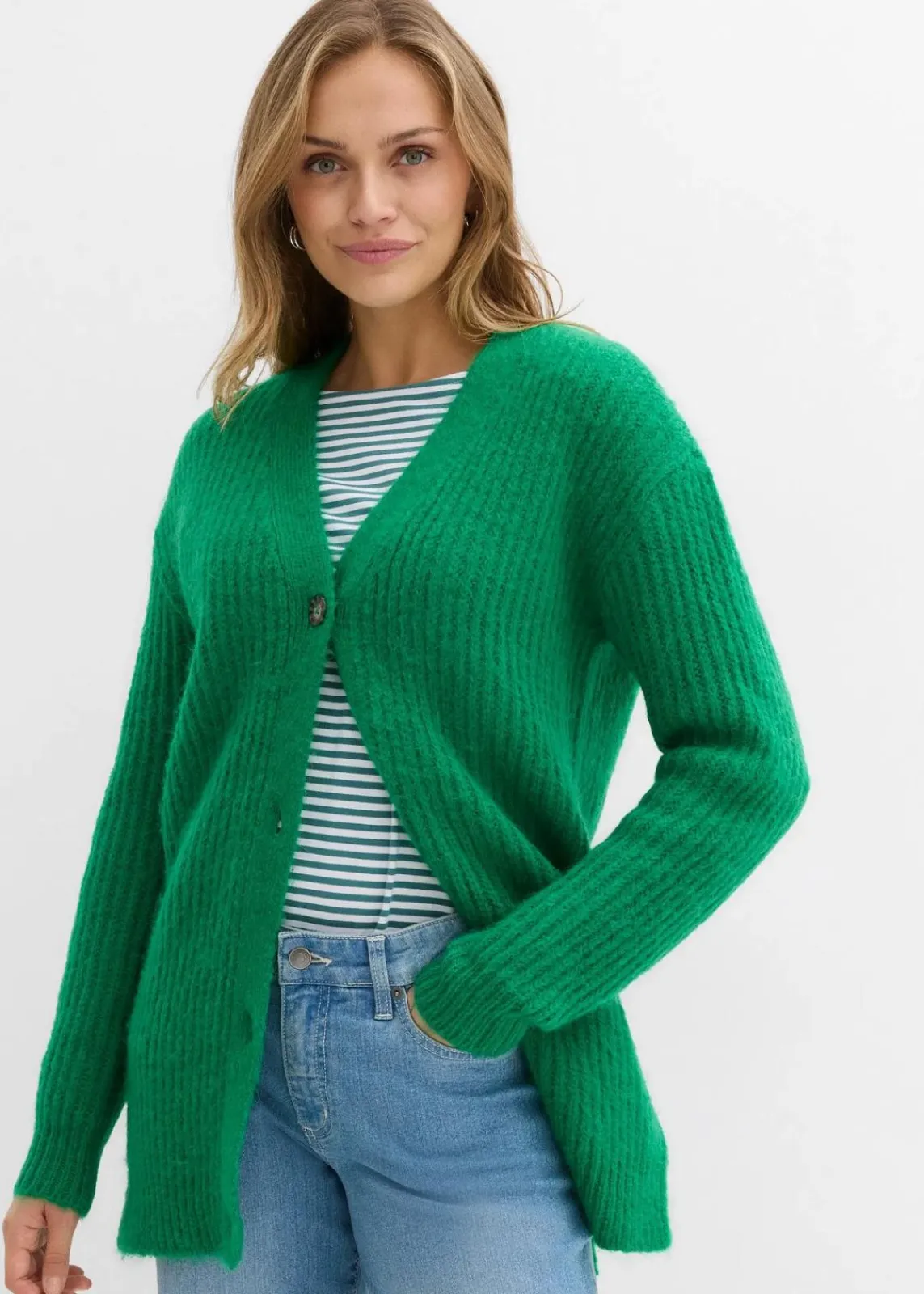Locker geschnittene Strickjacke mit Wollanteil