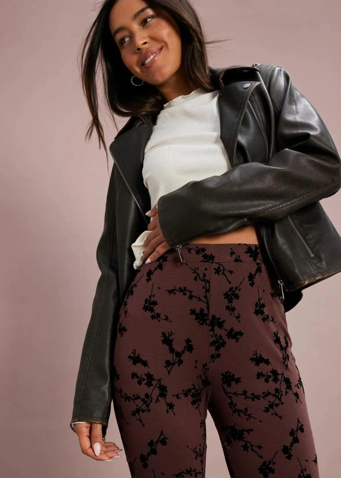 Ausgestellte Leggings aus softer Viskose mit Flockprint