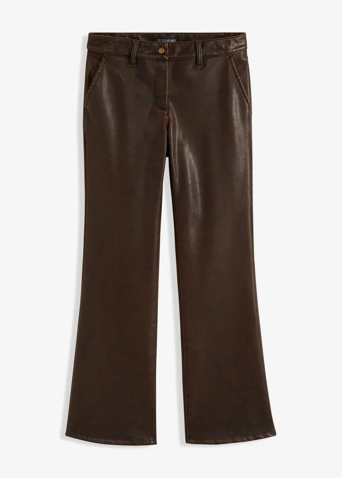 Modische Lederimitat-Hose mit geradem weitem Bein.