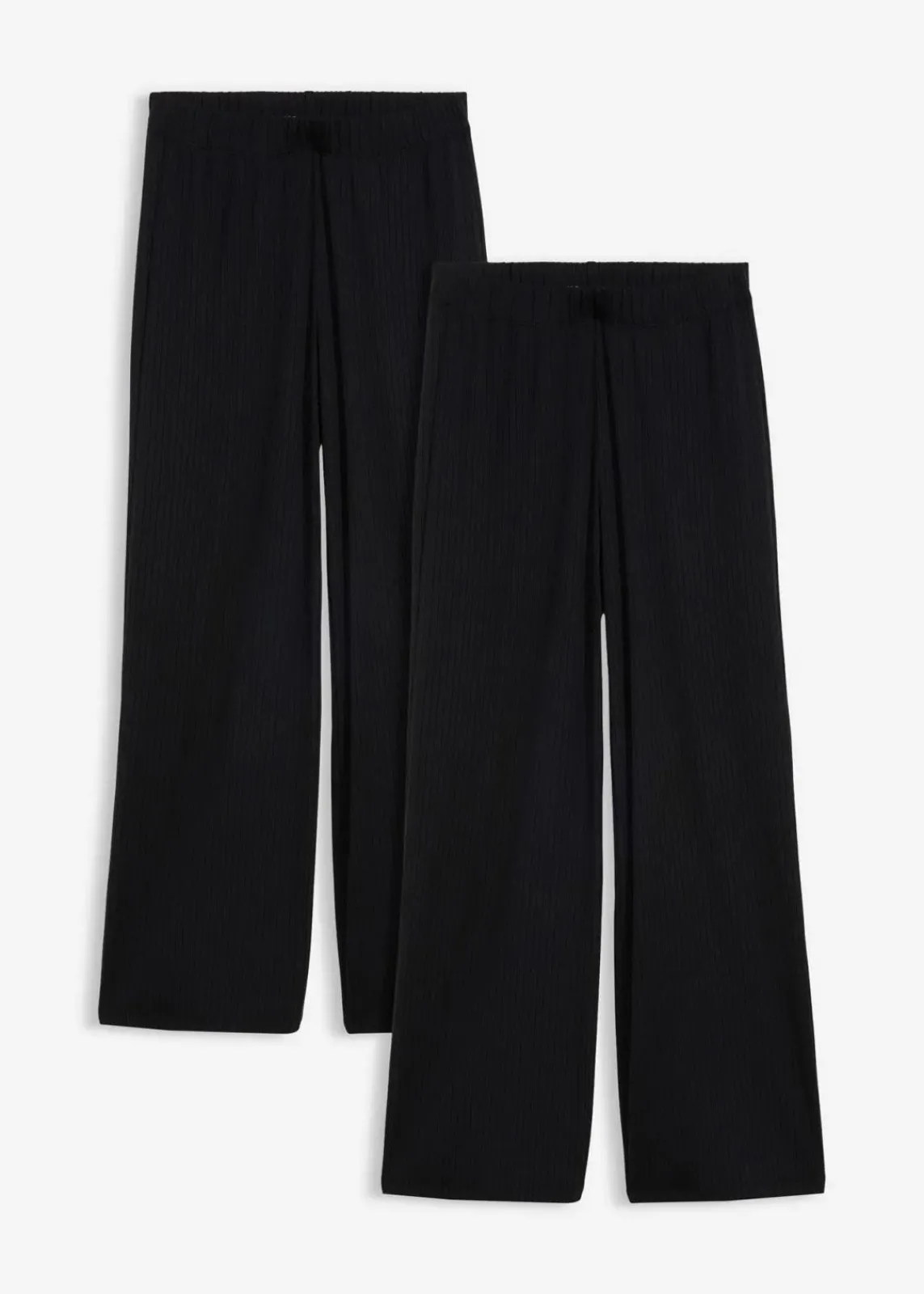 Jerseyhose aus Rippe mit hohem elastischem Bund, weitem Bein und lockerer Passform.