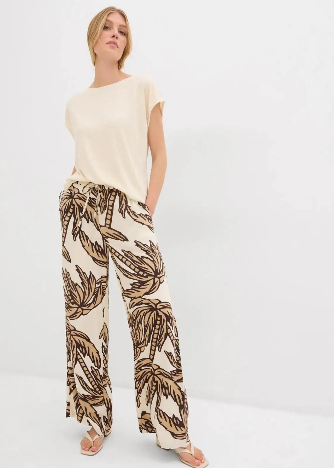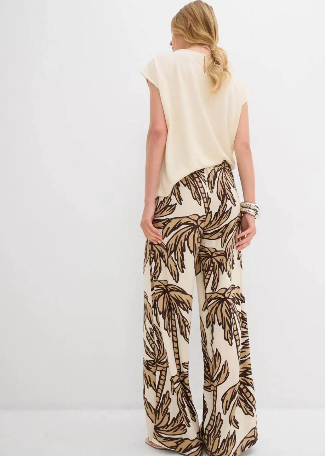 bedruckte Marlenehose aus fließender Viskose mit Gummibund