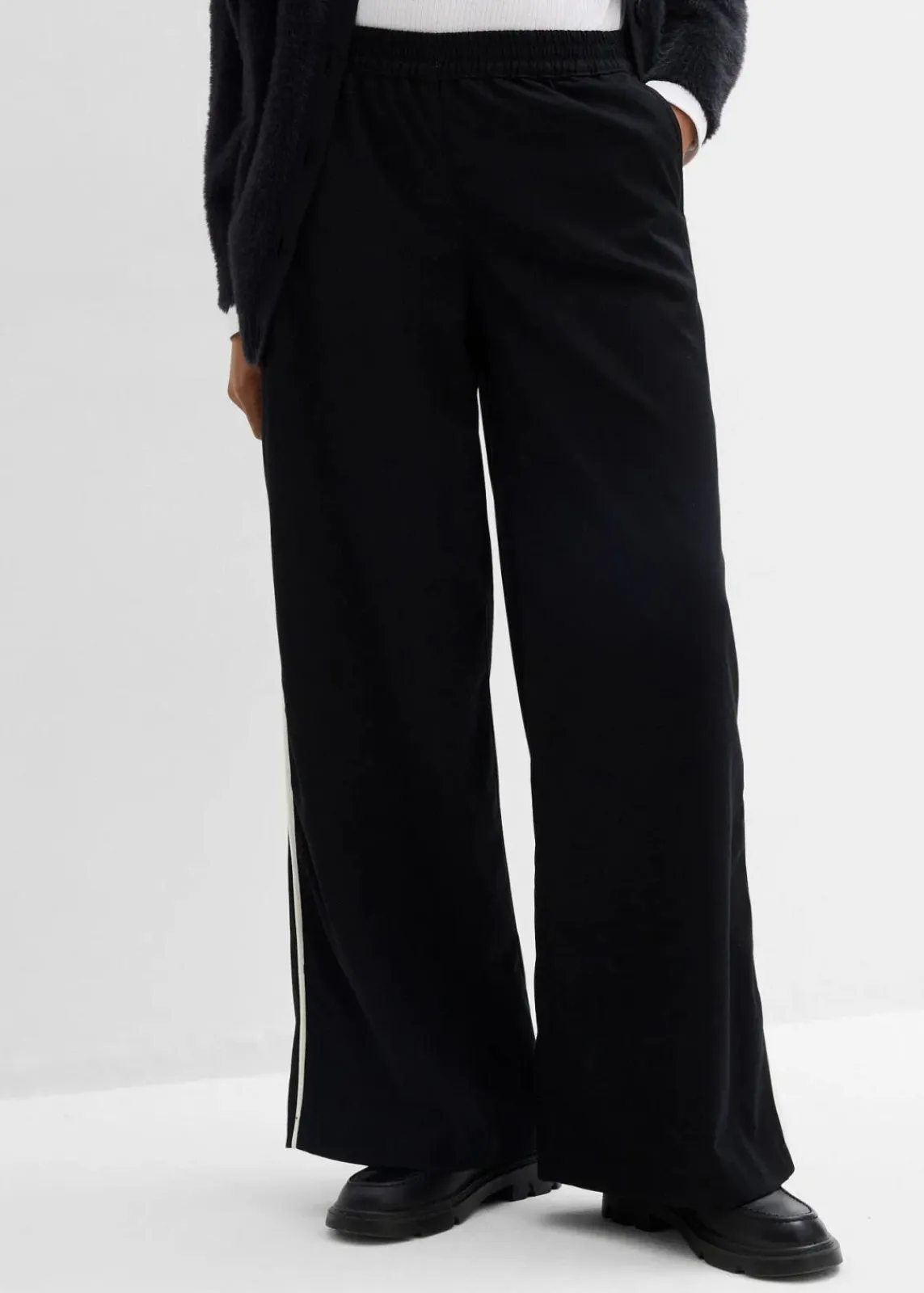 Marlenehose mit Bequembund mit weitem Bein und Seitenstreifen