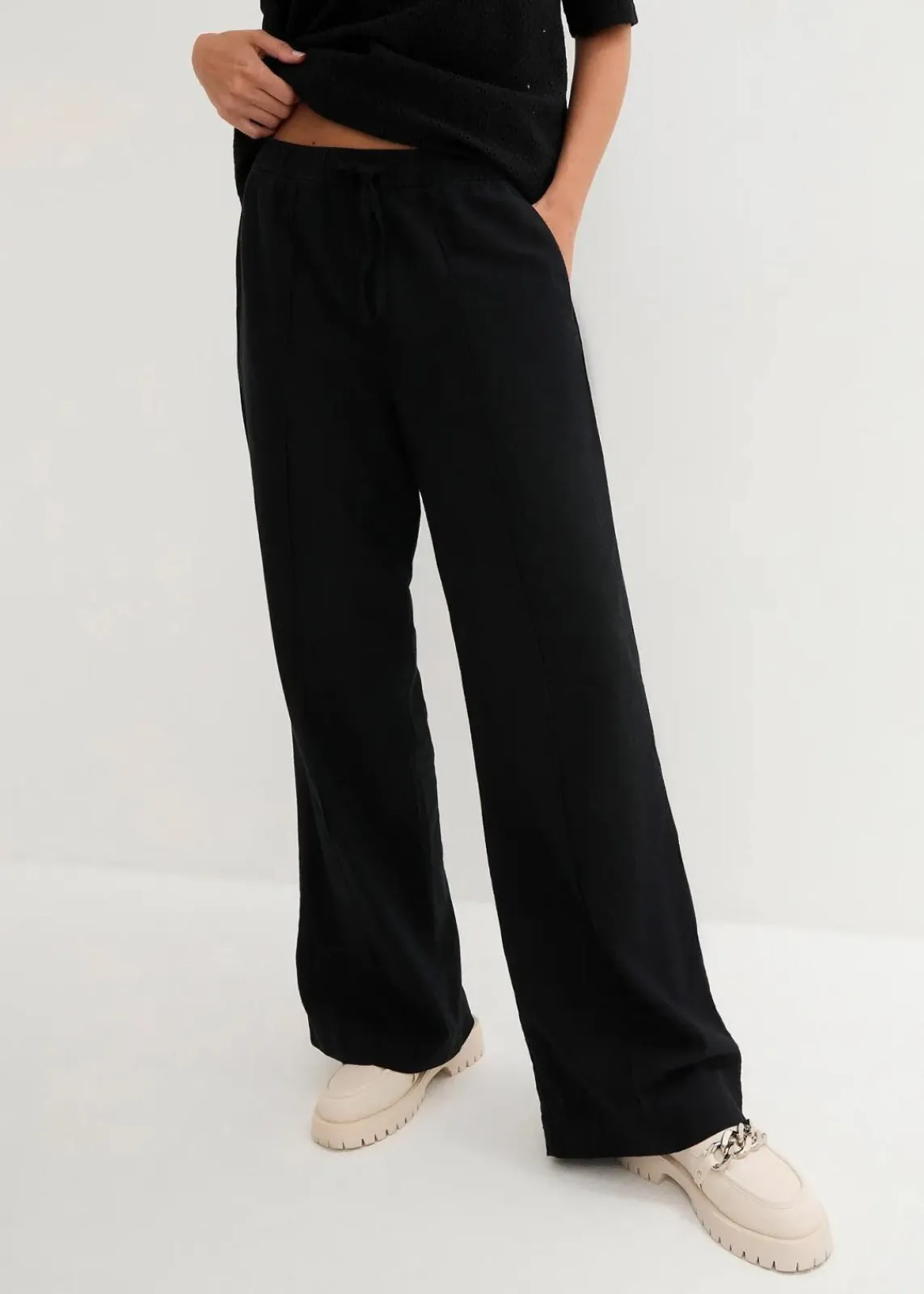 Knöchellange Leinenhose mit weitem Bein und lässiger Passform