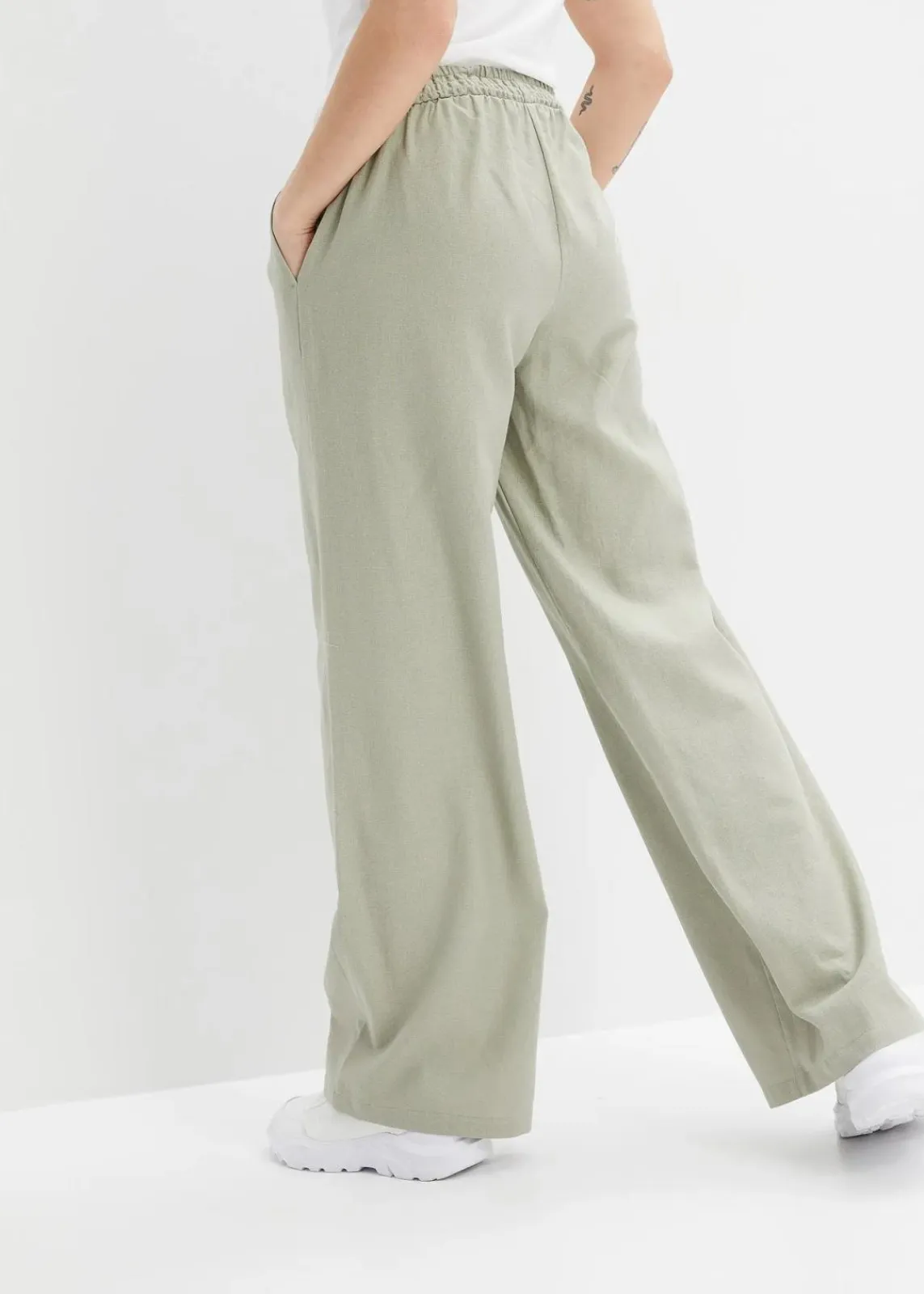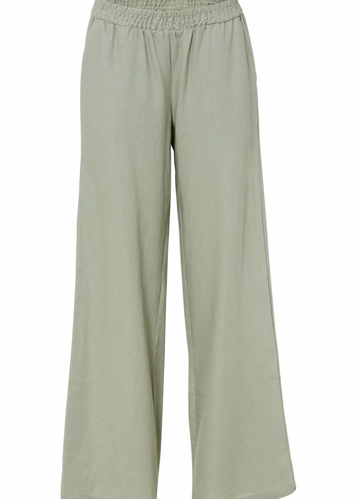 Weite Leinenhose mit Smock-Bund und Eingrifftaschen