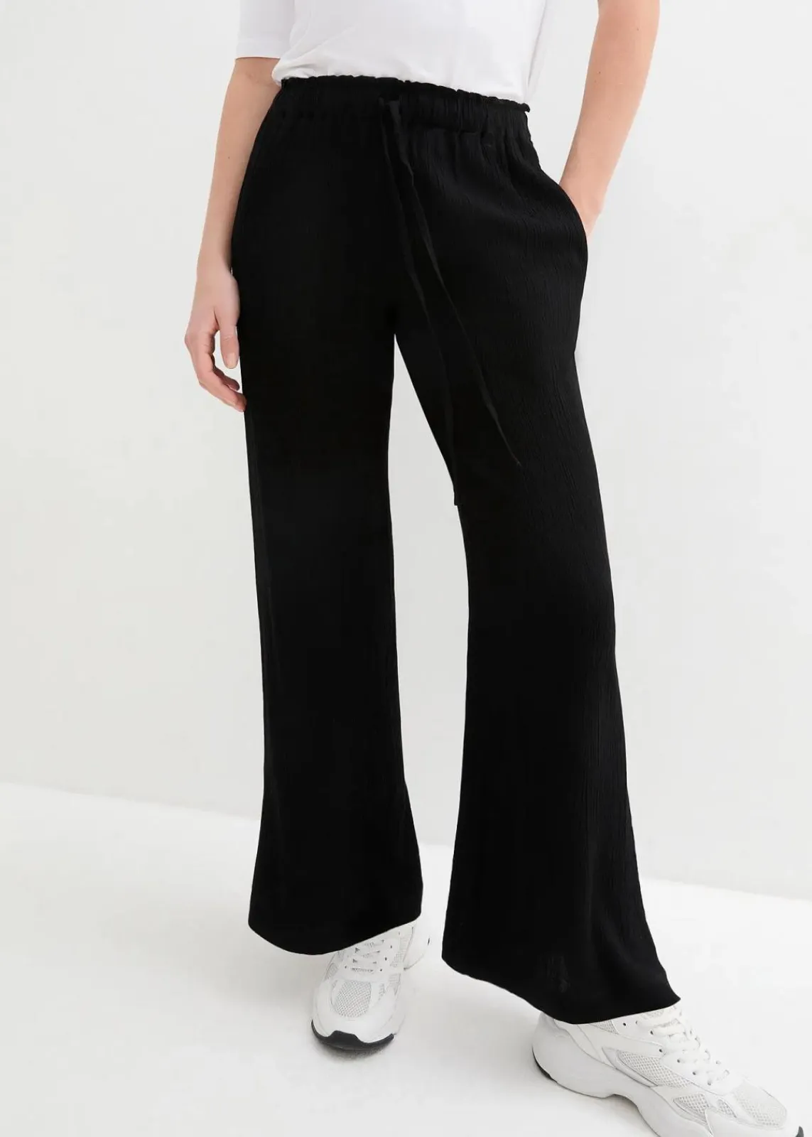 Weit geschnittene Hose aus strukturierter Viskose mit hoch geschnittenem Bund und seitlichen Eingriffstaschen.