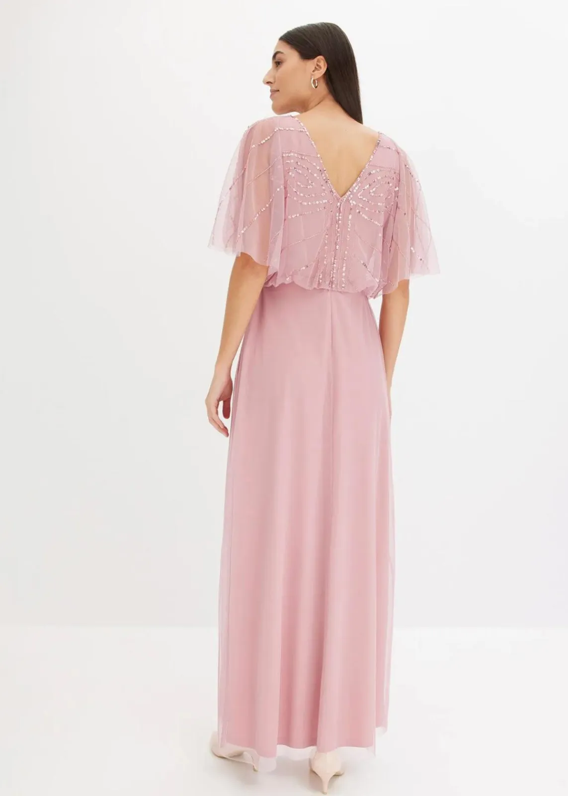 Klassisch und feminin: Abendkleid in Maxi-Länge aus feinem Tüll mit Paillettenstickerei