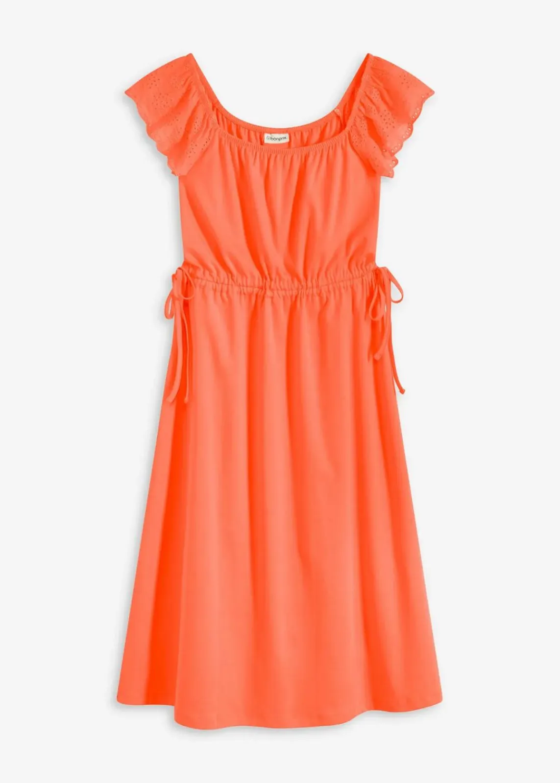 Jerseykleid mit Embroiderie Anglaise Volant-Ärmeln
