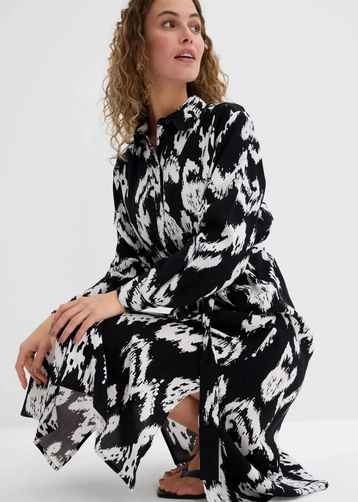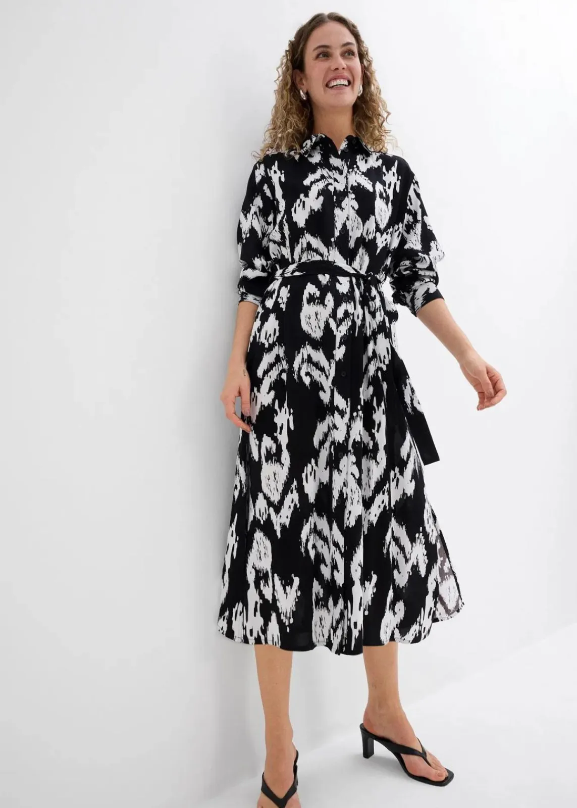 Wadenlanges Hemdblusenkleid mit Ethnodruck