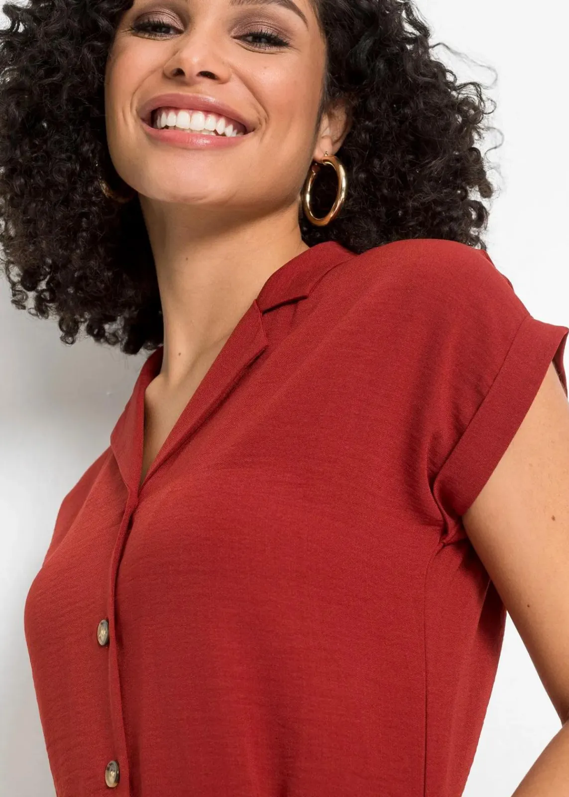 Luftiges Blusenkleid mit Taschen und Bindeband um die Taille.