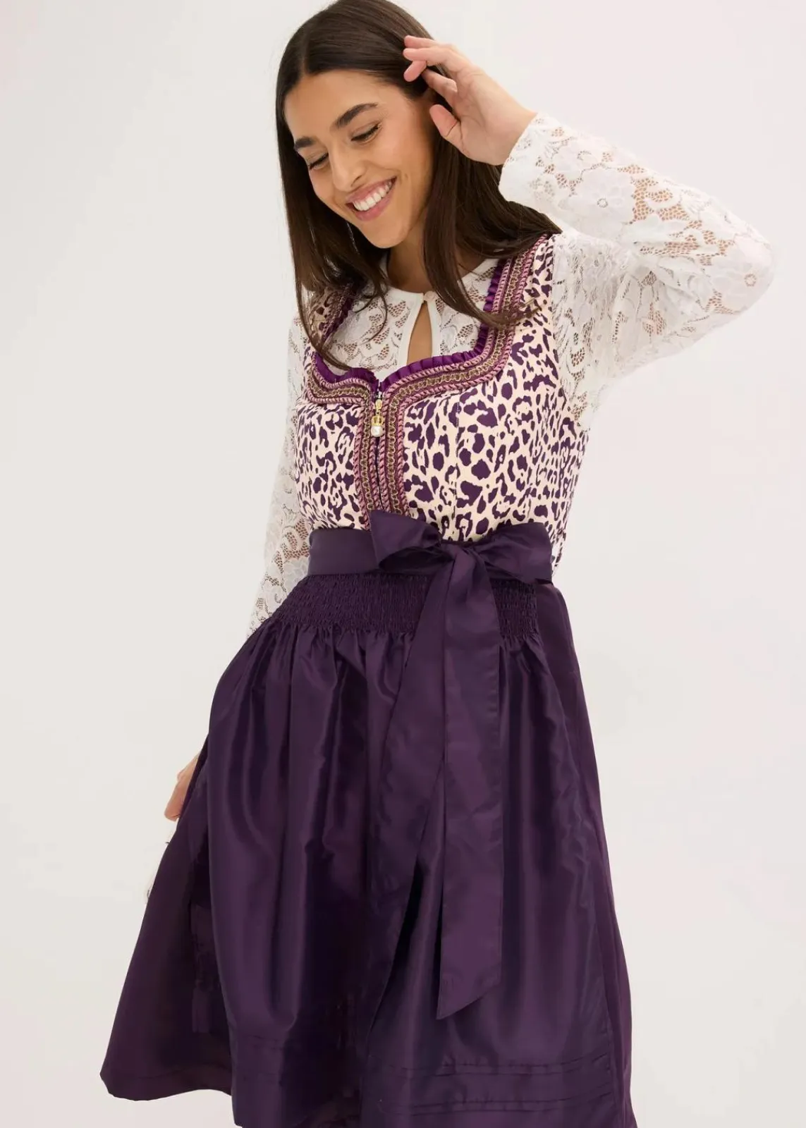 Modern und feminin: Edles Dirndl mit einer hochwertigen Borte und einem Rock aus glänzendem Satin