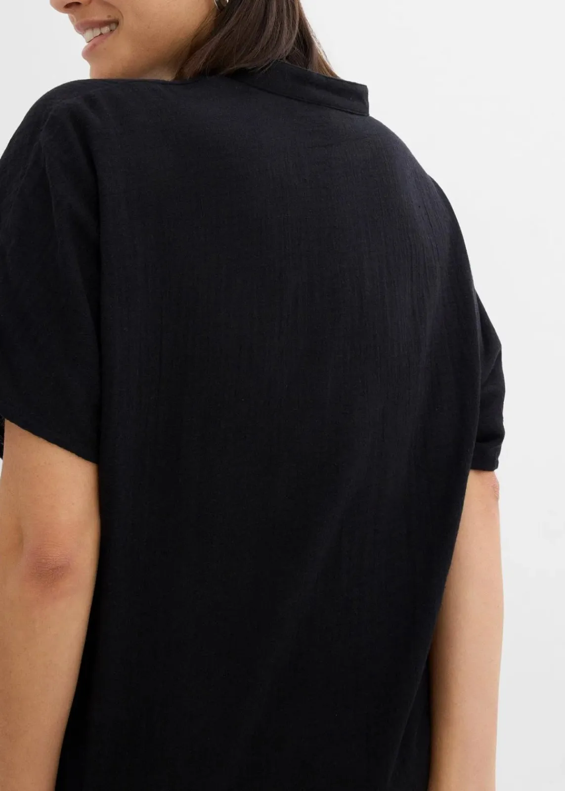 Musselin-Kleid mit Henley-Kragen, knieumspielend