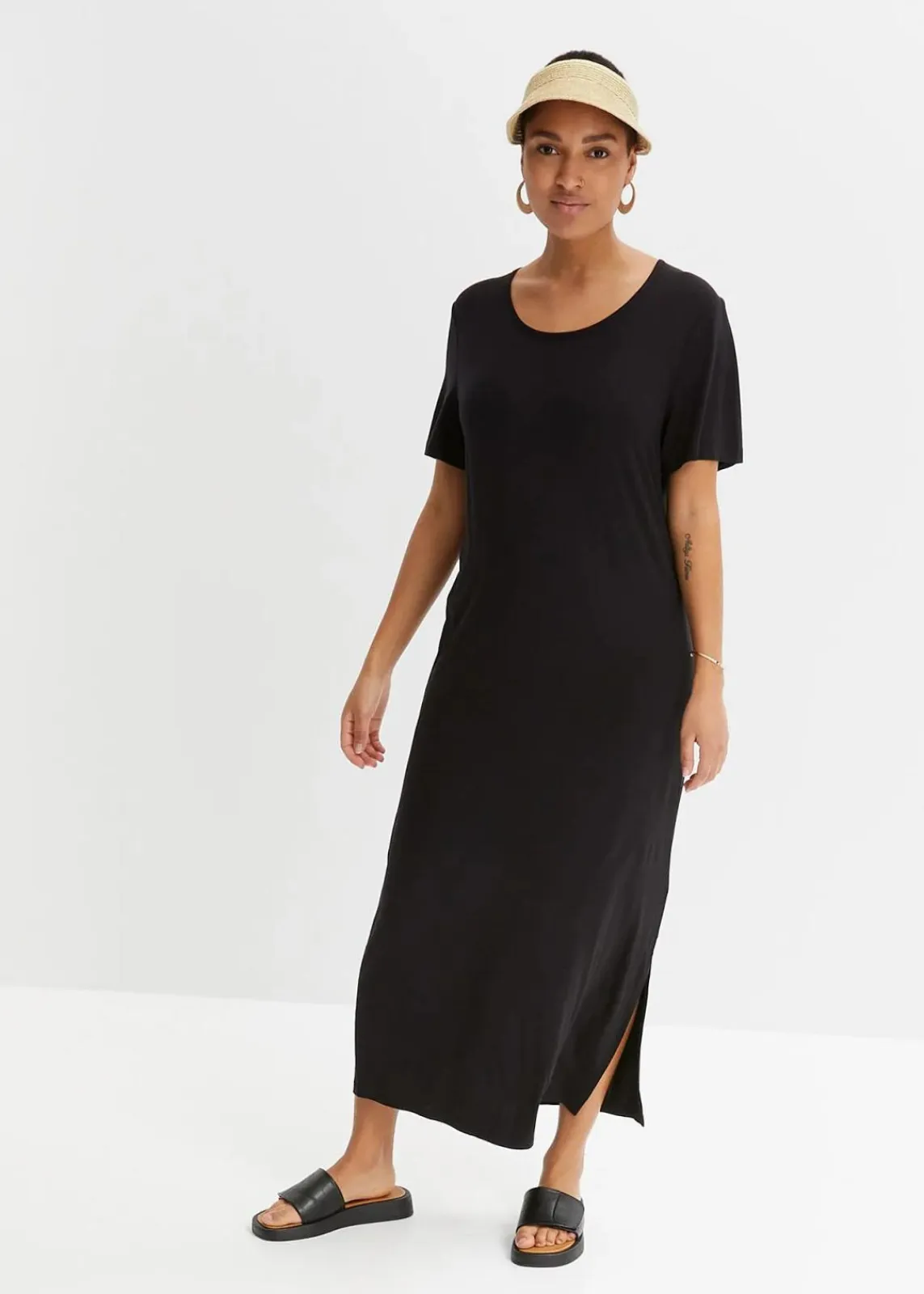 Bequem geschnittenes Shirt-Kleid mit Schlitz in Maxi-Länge