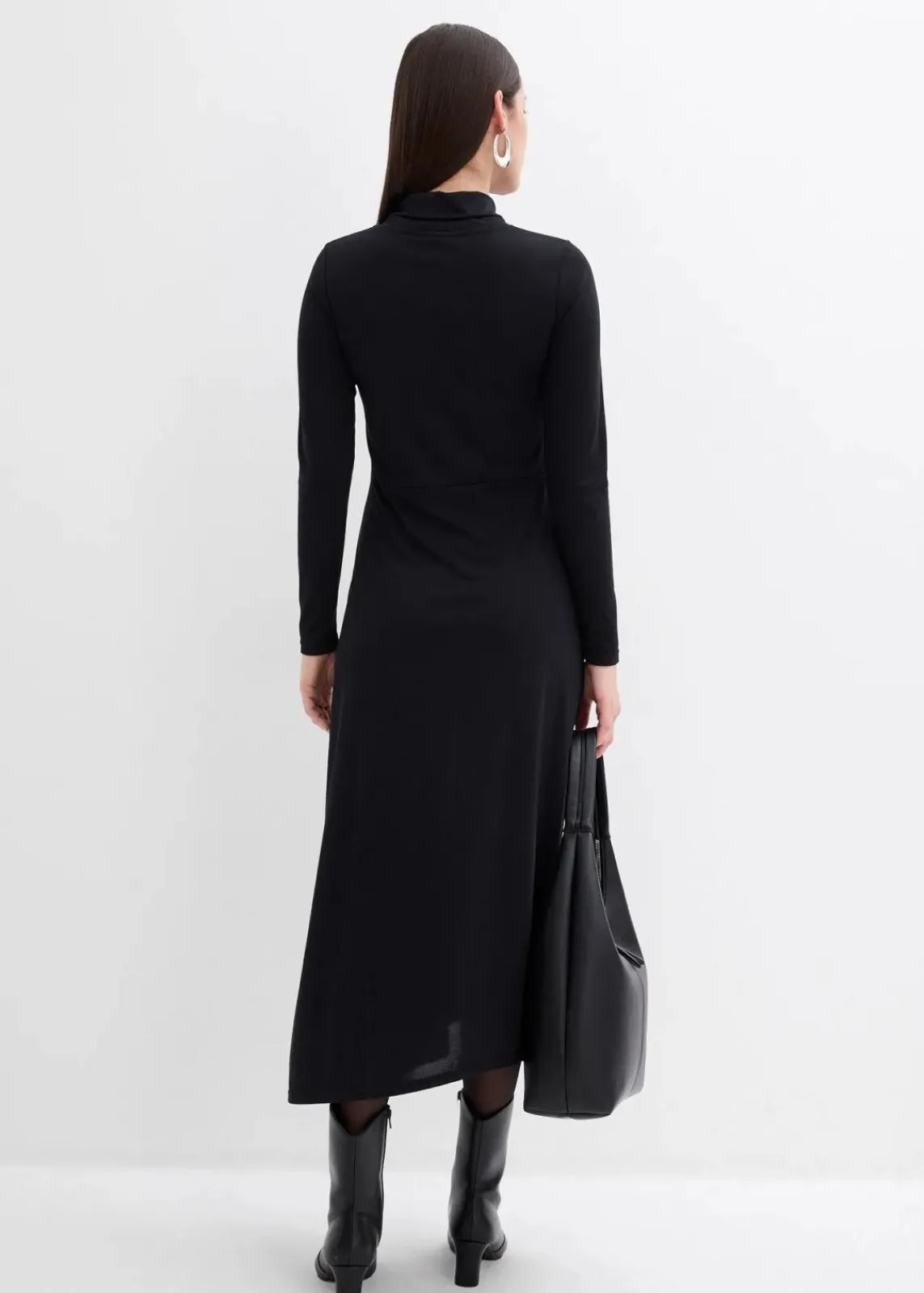 Tailliertes Jerseykleid mit Rollkragen und abgesteppter Teilungsnaht auf Taillenhöhe