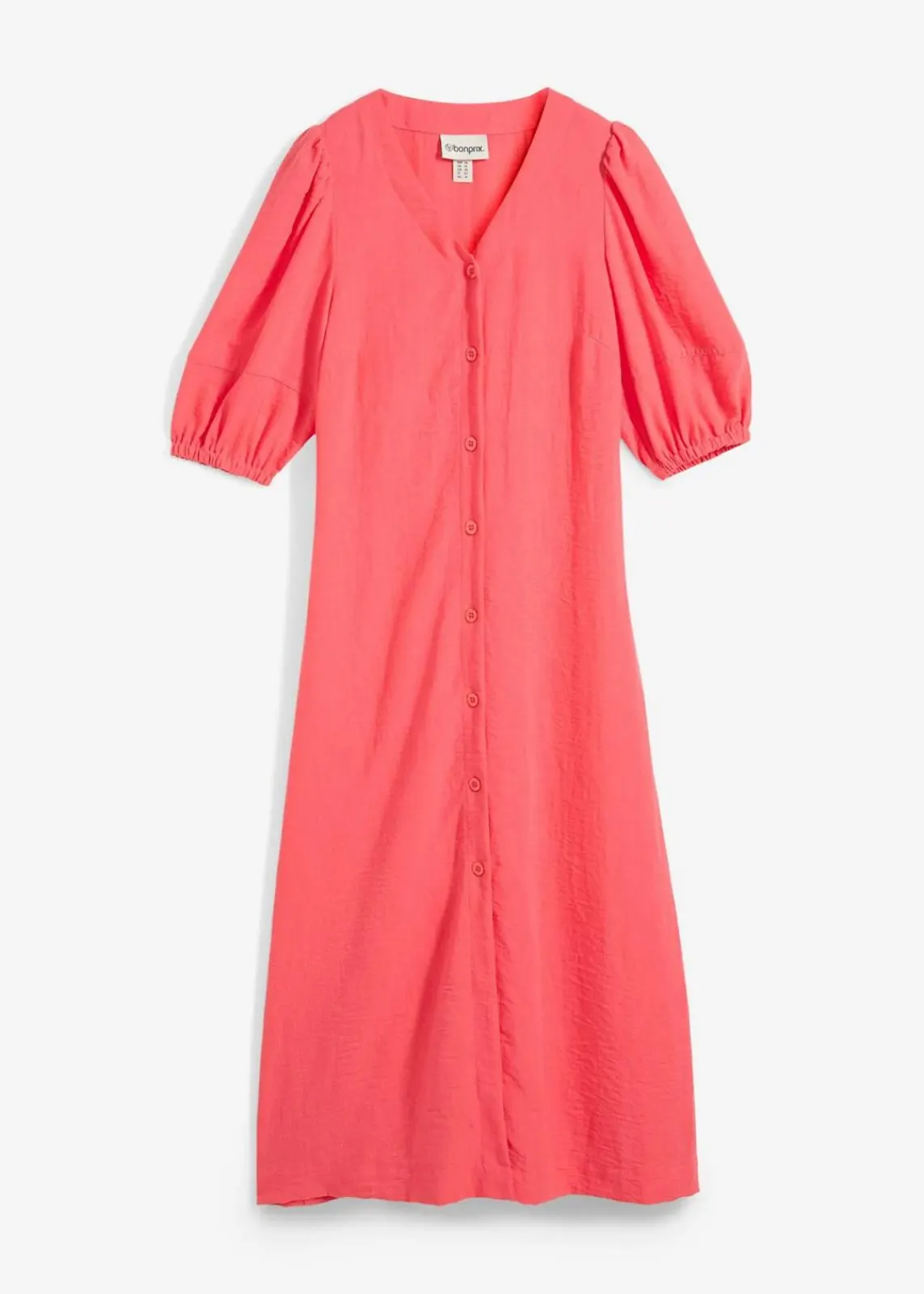 Langes Kleid mit Knopfleiste und Volumenärmeln