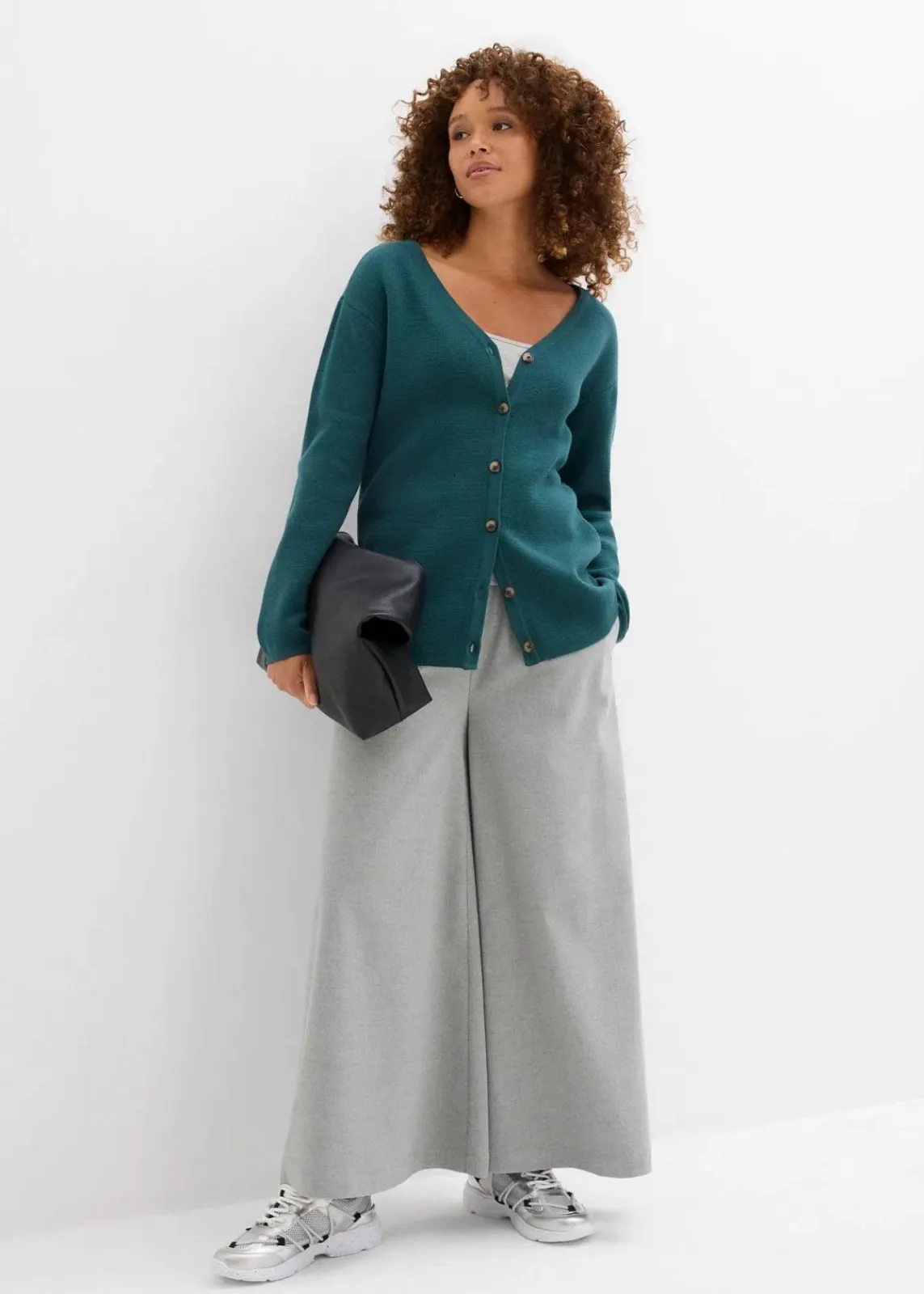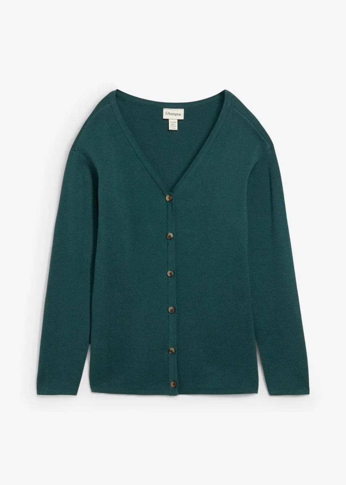 zeitlose Strickjacke aus Milano Strick mit Knöpfen in edler Hornoptik