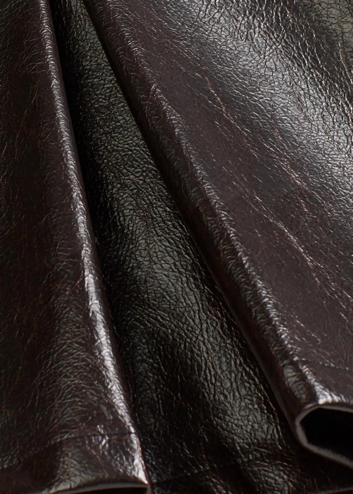Minirock aus geprägtem Lacklederimitat mit Falte vorne