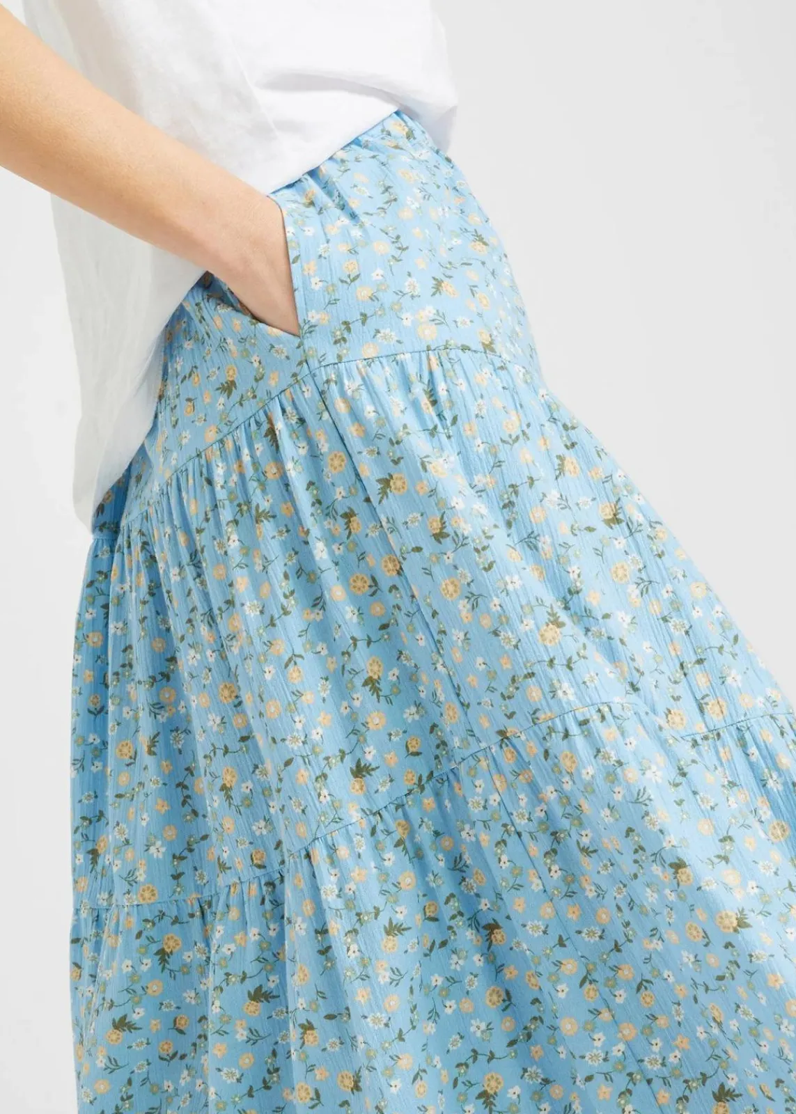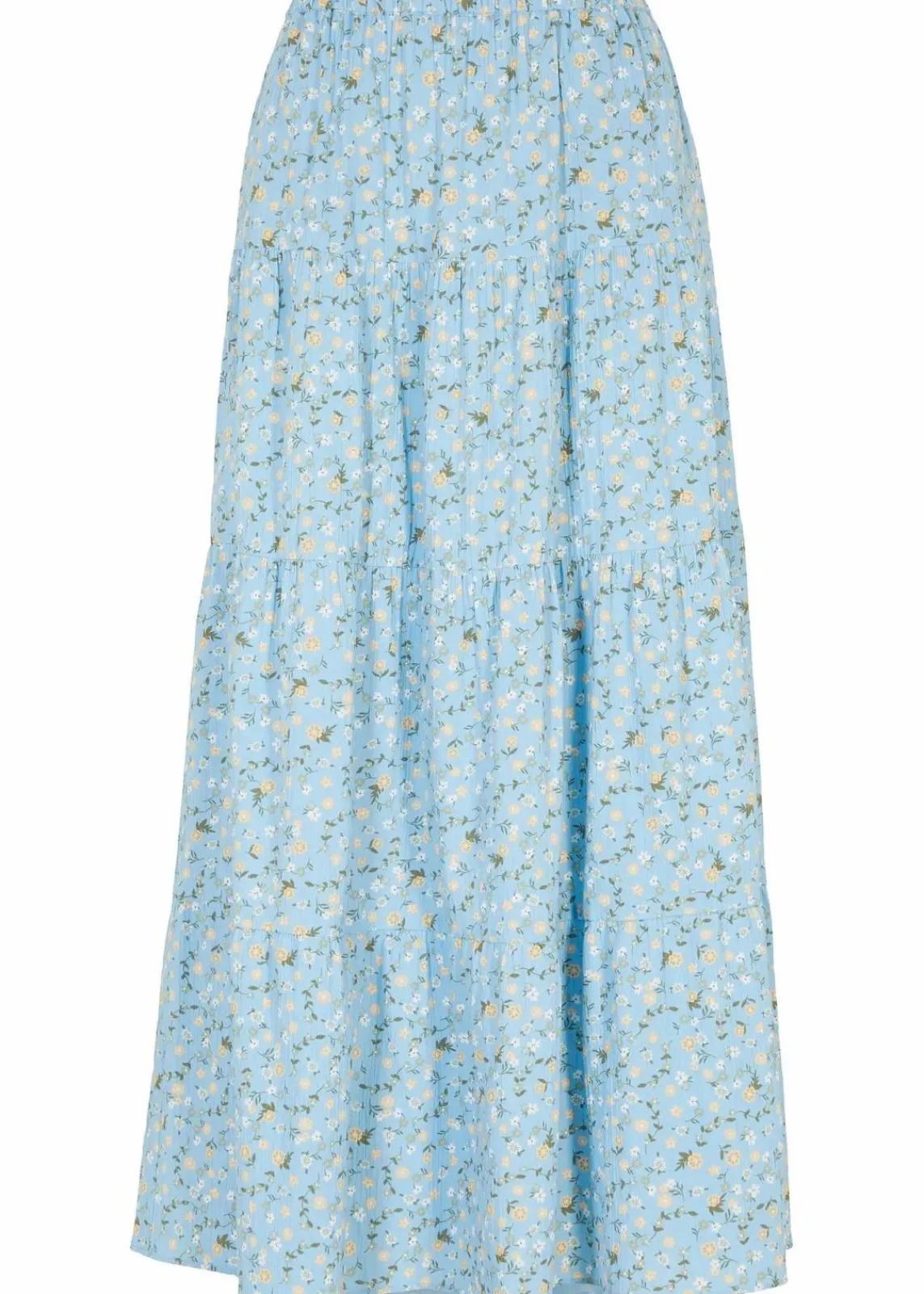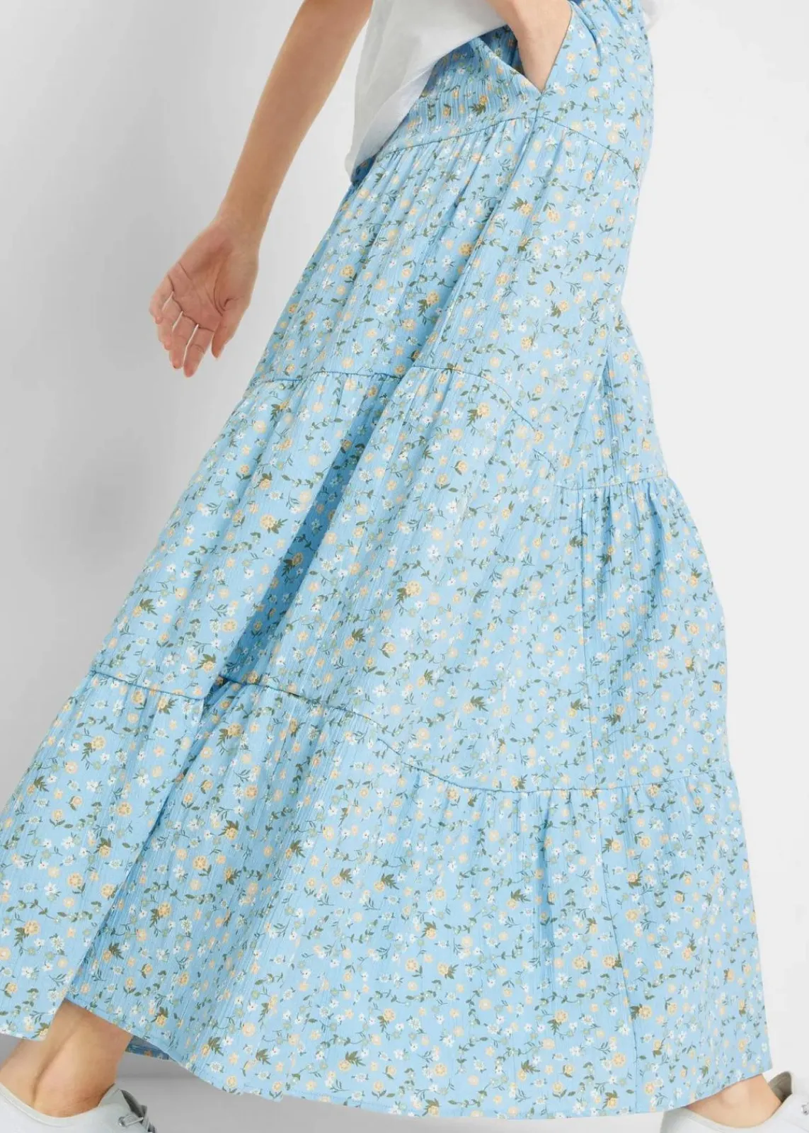 Baumwoll-Stufenrock mit Elastikbund in Maxi-Länge