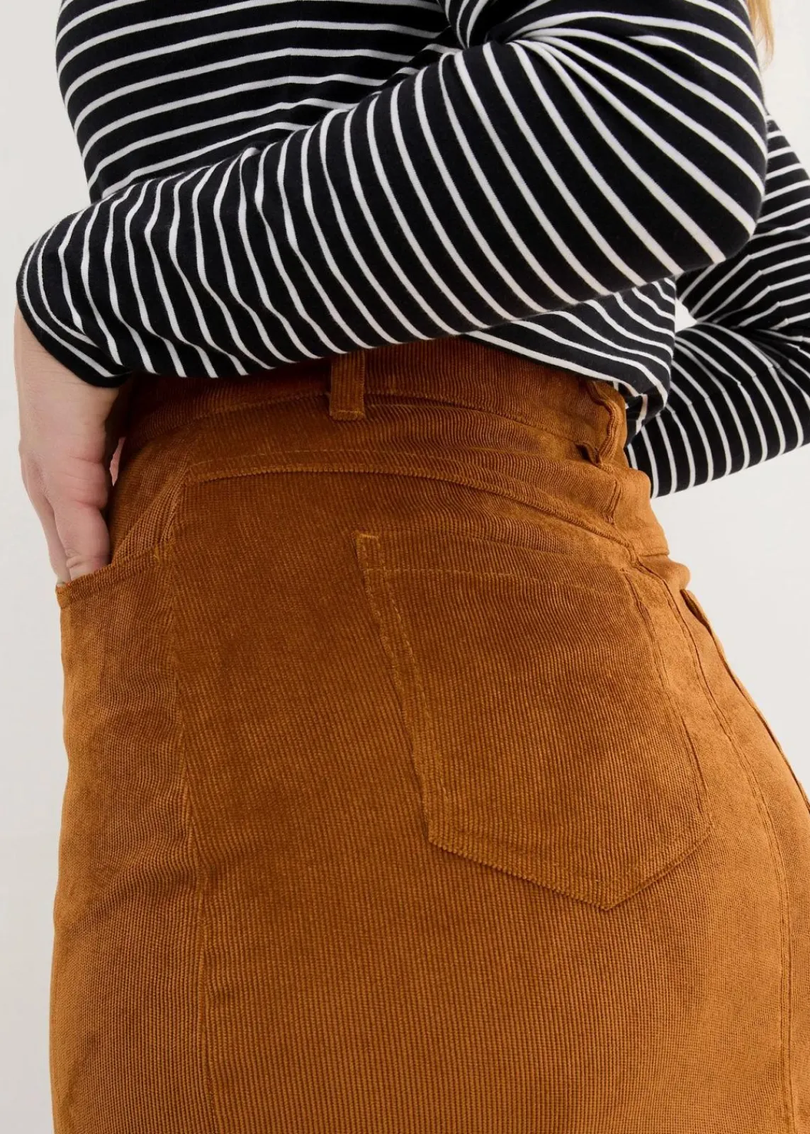 Modischer Cord-Rock mit Schlitz an der Vorderseite und Taschen