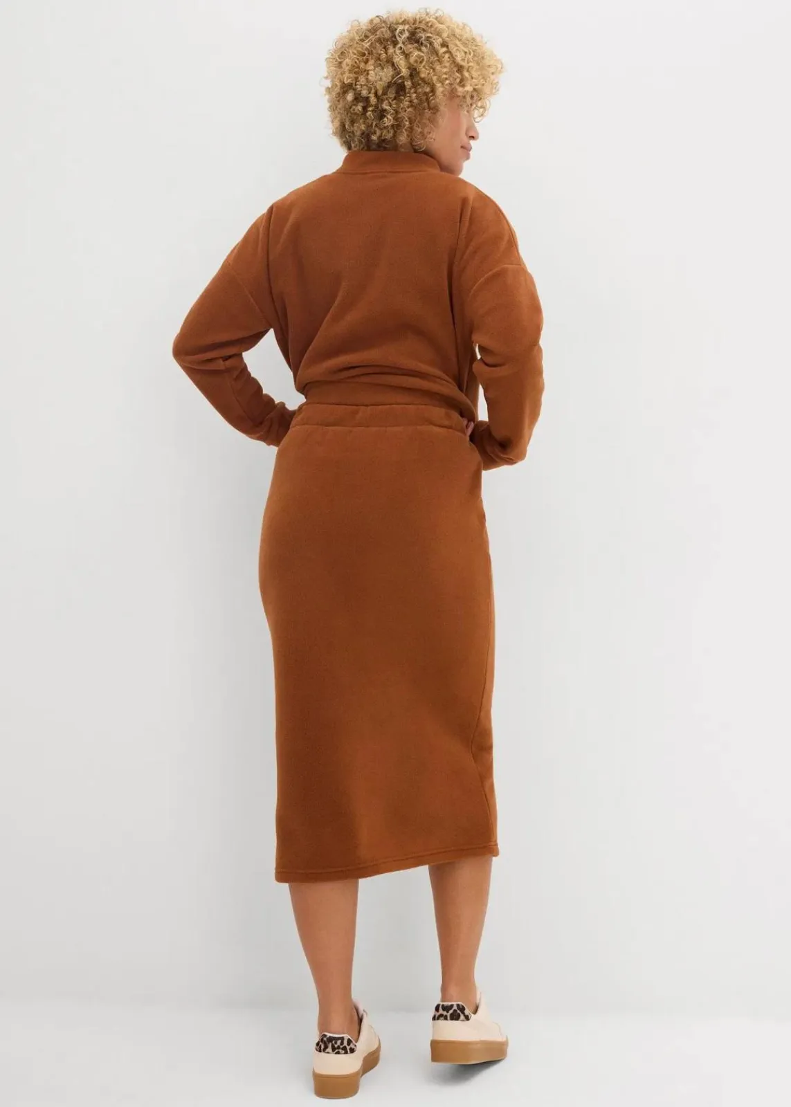 Midirock mit elastischem Bund und vorderem Beinschlitz.