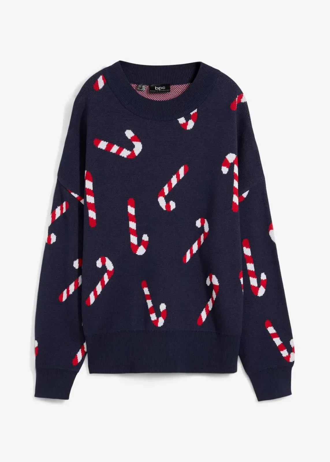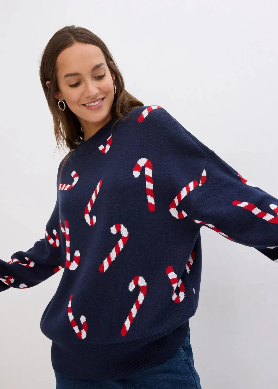 Weit geschnittener Rundhalspullover mit weihnachtlichem Motiv