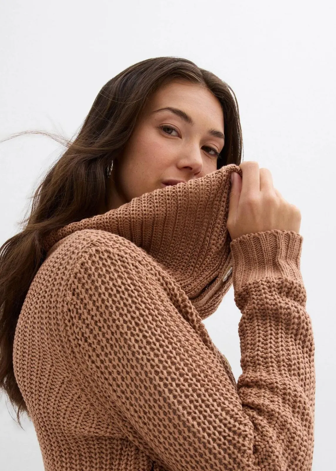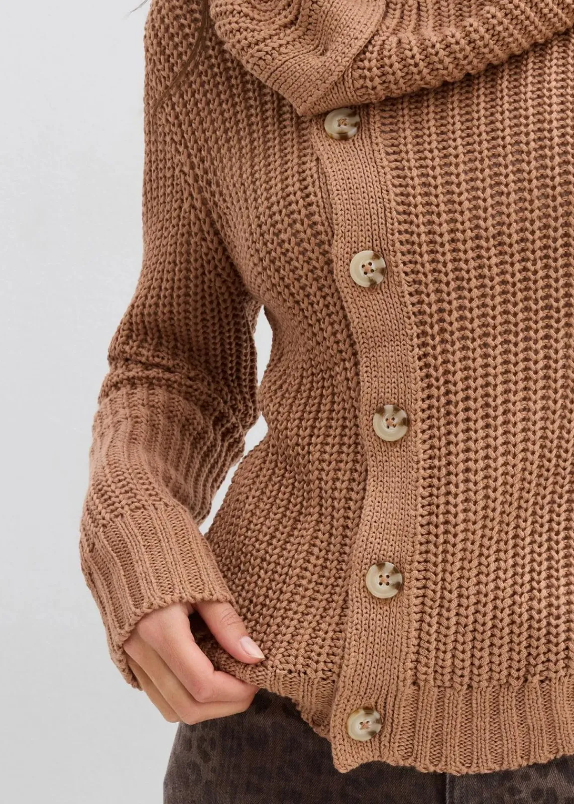 Gemütlicher Grobstrick-Pullover mit Knopfleiste