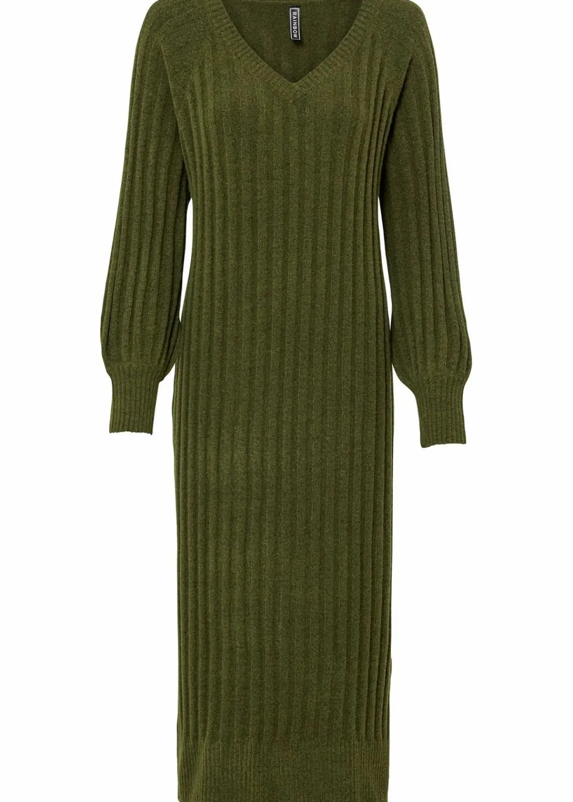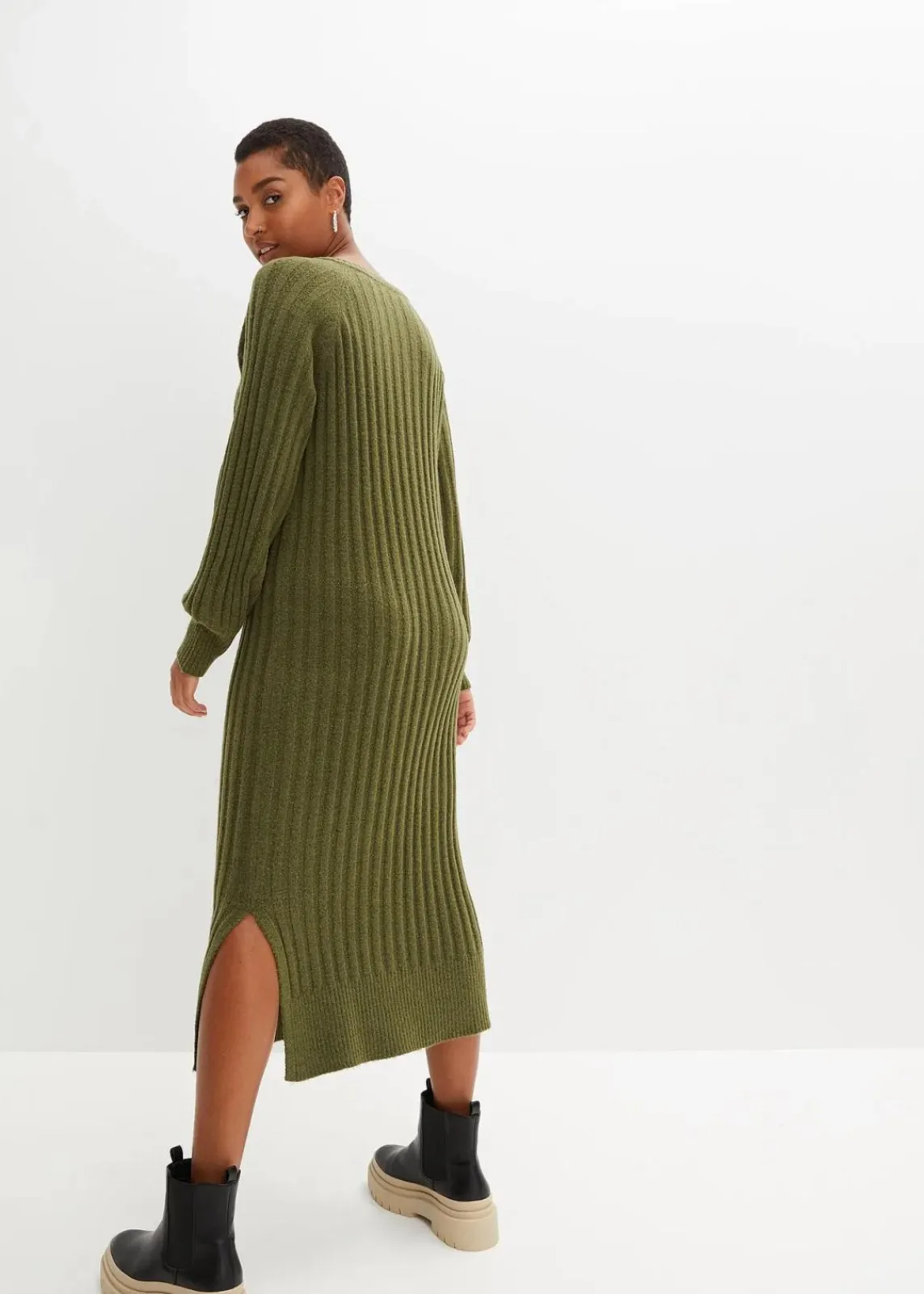 Midi Strickkleid mit Schlitz und V-Ausschnitt