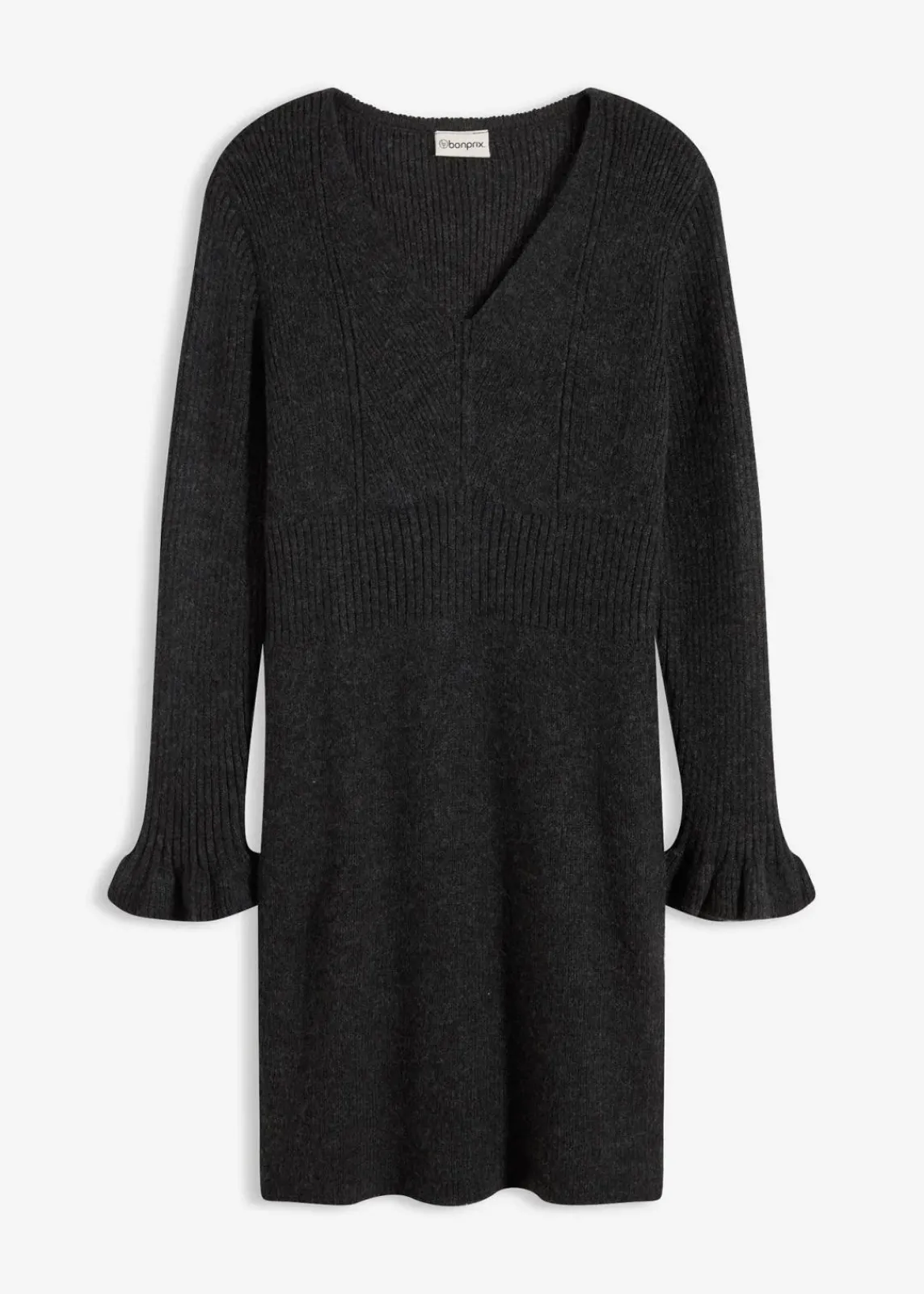 feminines Strickkleid mit Volants am Ärmelsaum