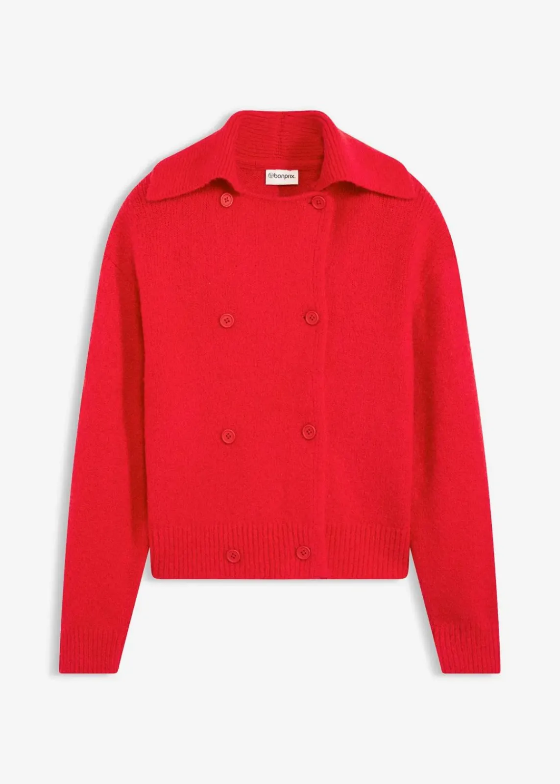 Moderne Strickjacke mit doppelreihiger Knopfleiste und Kragen