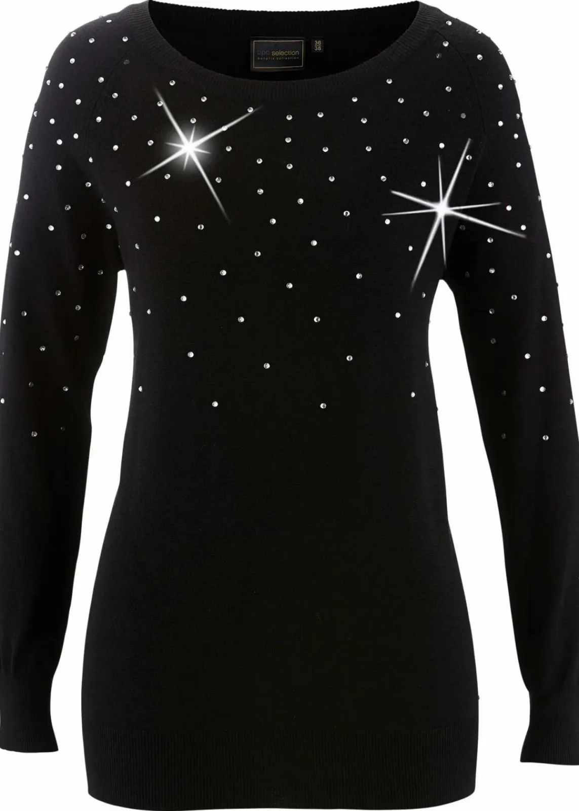 schöner Rundhals-Pullover mit Steinchenverzierung