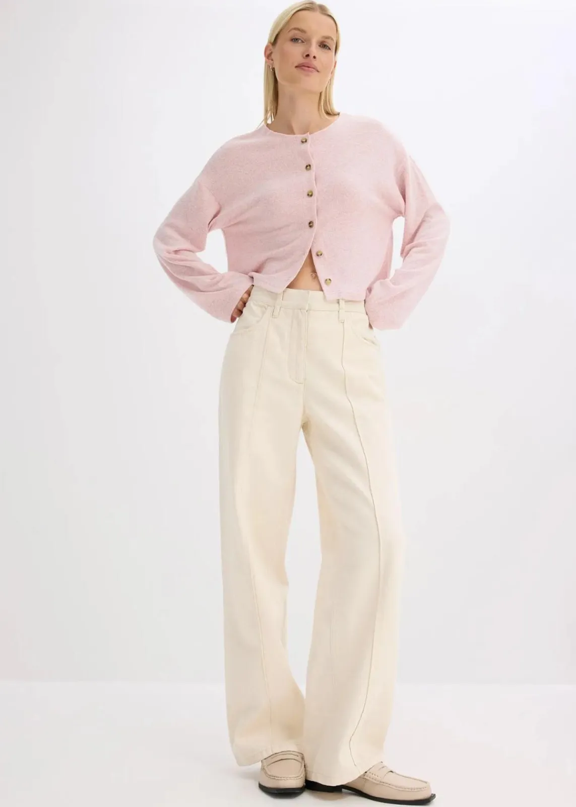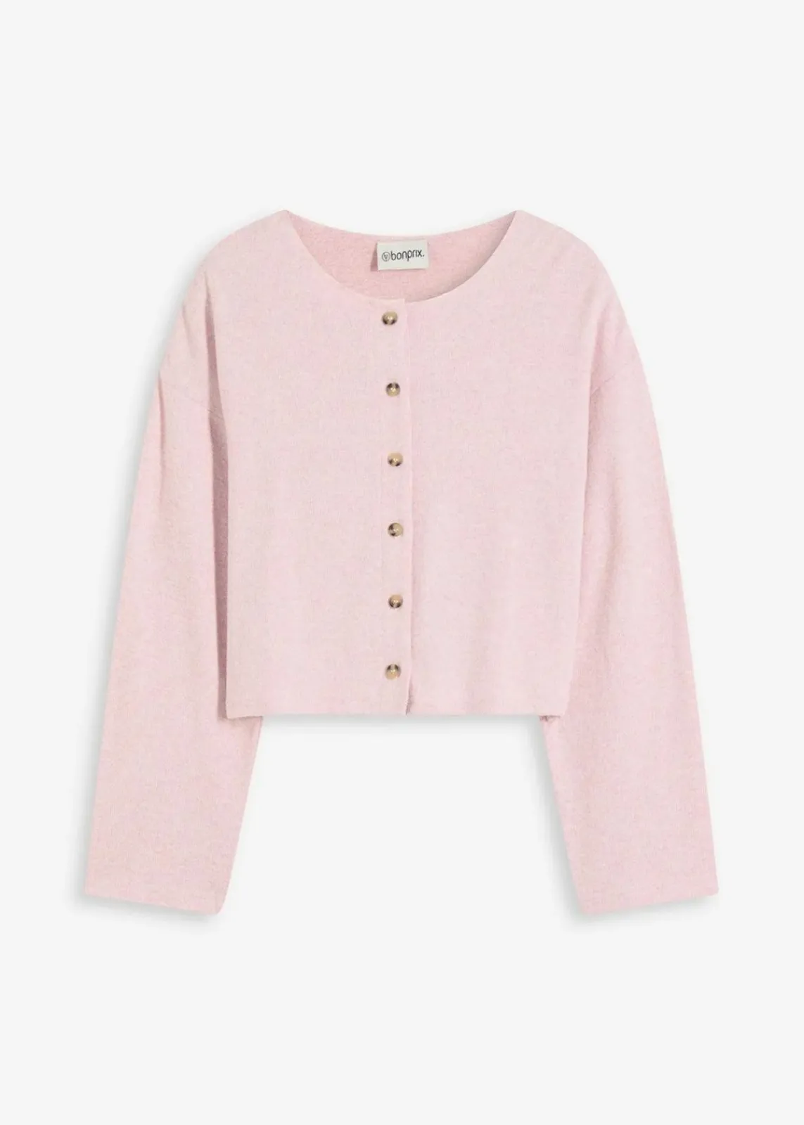 Gerippter Cardigan mit Knopfleiste und weiten Ärmeln