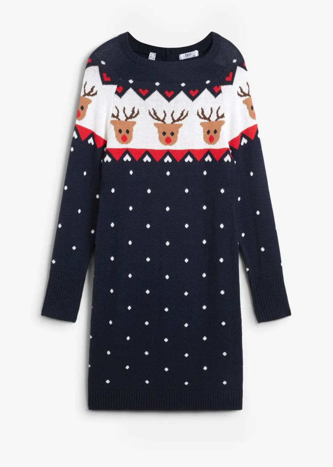 Komfortables Strickkleid mit weihnachtlichem Rentier Druck