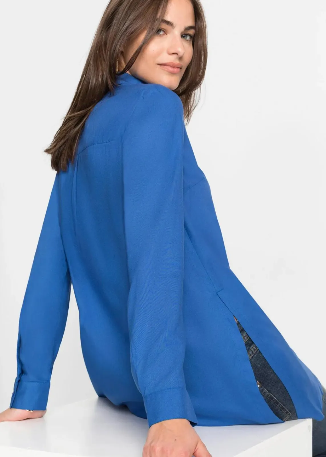 Modische Longbluse mit attraktivem Schlitz-Detail und verdeckter Knopfleiste.