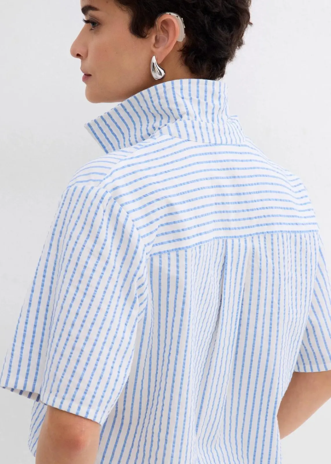 Kurzarmhemd mit luftiger Seersucker-Textur, mit einem Reverskragen, einer aufgesetzten Brusttasche und leicht glänzenden Knöpfen