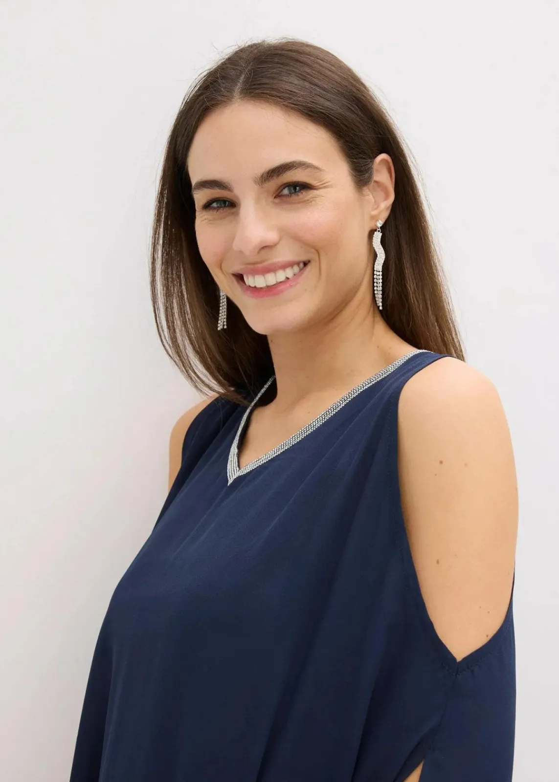 Elegant und modern: Bluse mit Cut-Outs und Strasssteinverzierung am Ausschnitt