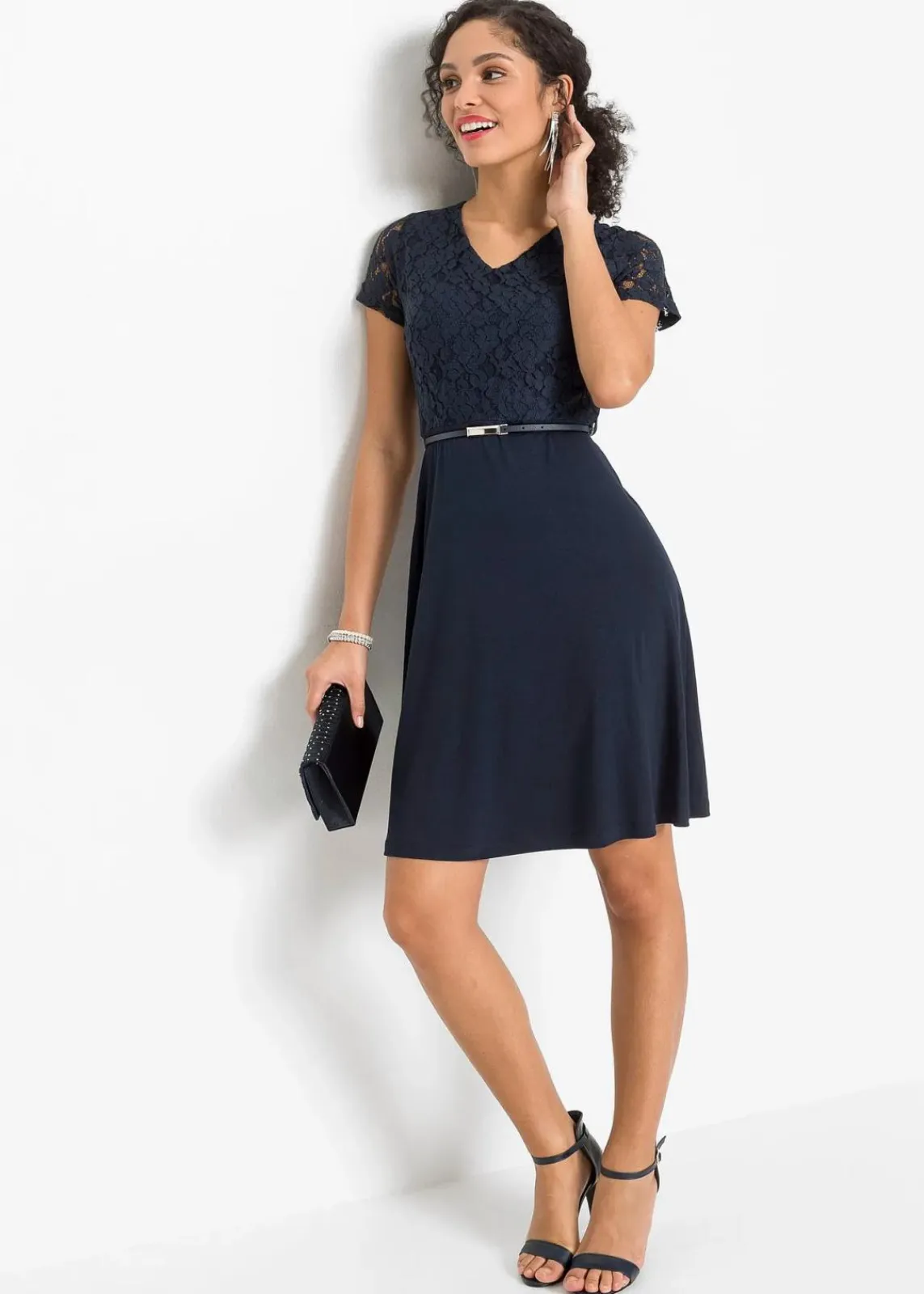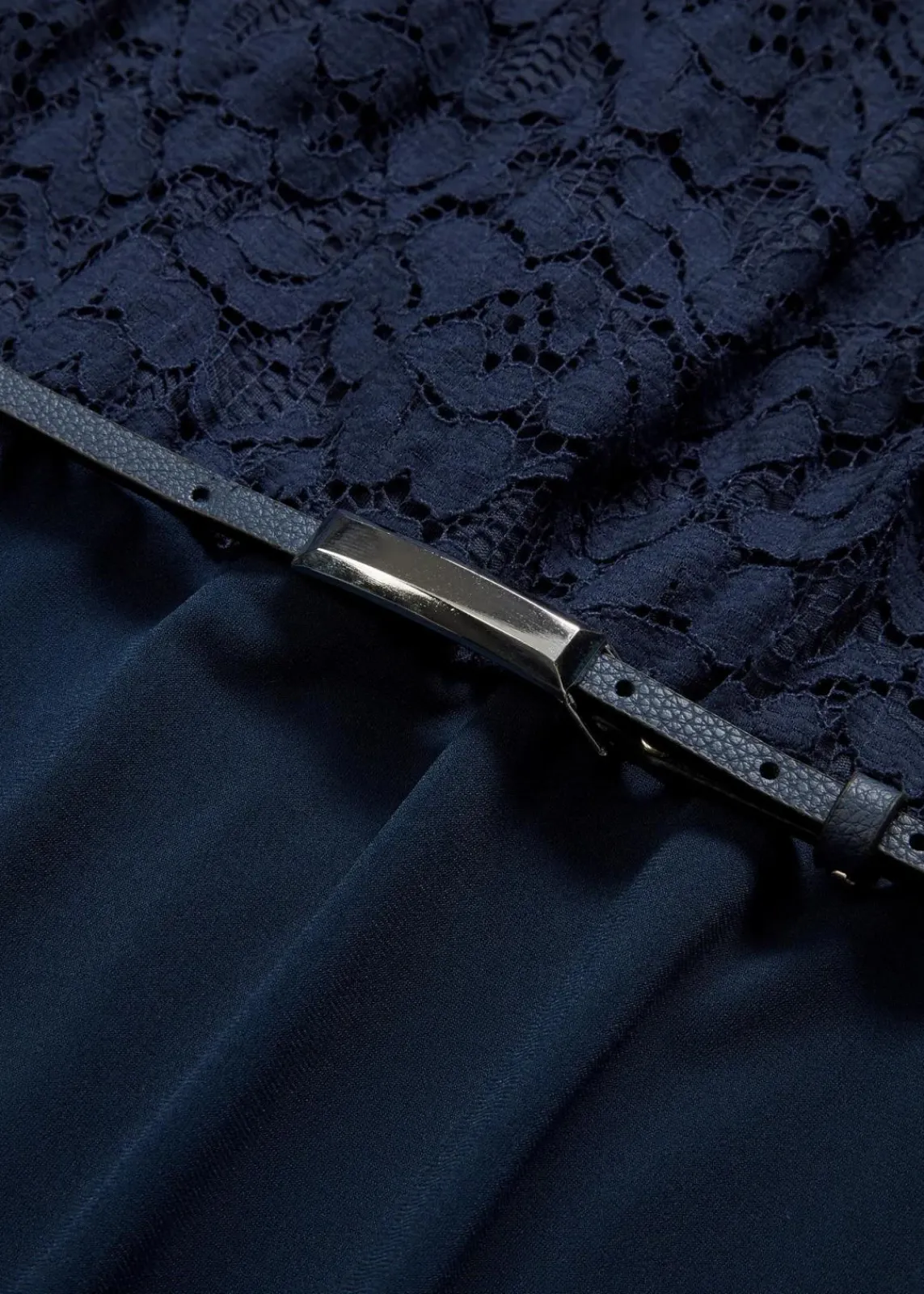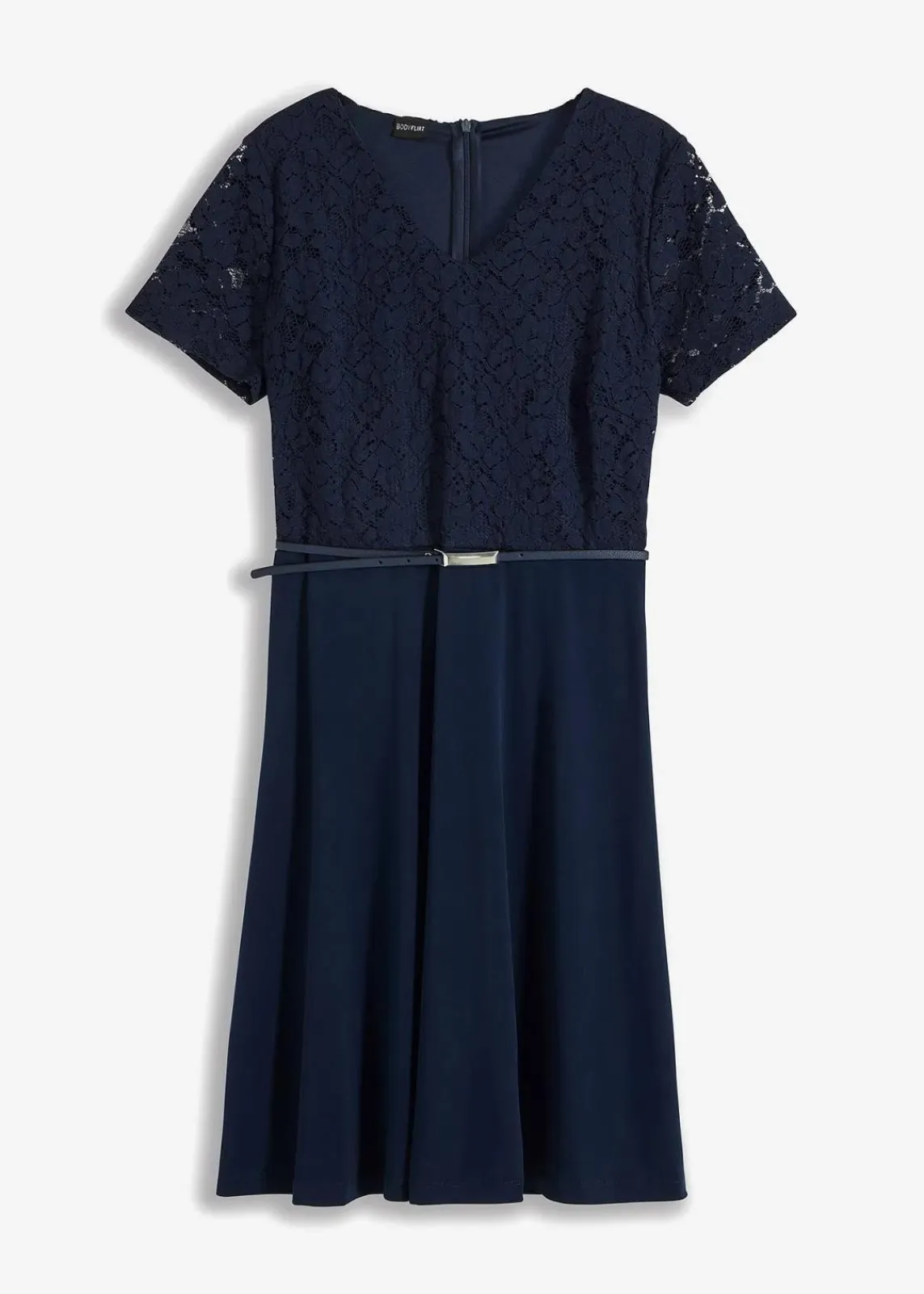 Elegantes Kleid mit Spitze im Oberteil und Gürtel mit Accessoire-Verschluss