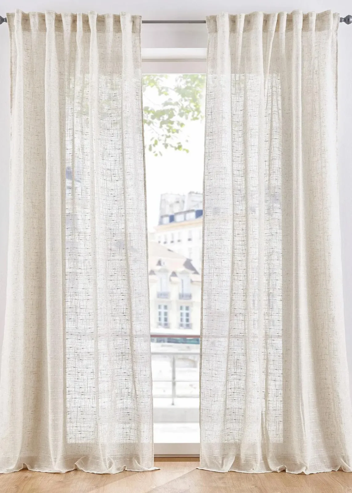 Toller Natur-Look: Unsere Gardine verzaubert mit ihrem natürlichen Leinen-Look. Die hellen Verdickungen unterstreichen die tolle Struktur. Die Halbtransparenz spielt schön mit einfallendem Licht und hält trotzdem fremde Blicke fern. Unsere pflegeleichte Gardine passt sich hervorragend in verschiedene Einrichtungskonzepte ein und wird Dich begeistern.