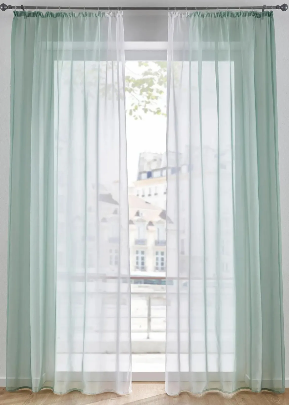 Ein toller Hingucker für deine Fenster: moderne Gardine mit einem frischen Farbenverlauf im praktischem 2er-Pack. Die Gardinen sind aus leichter transparenter Voile-Qualität und lassen dadurch viel Tageslicht rein.