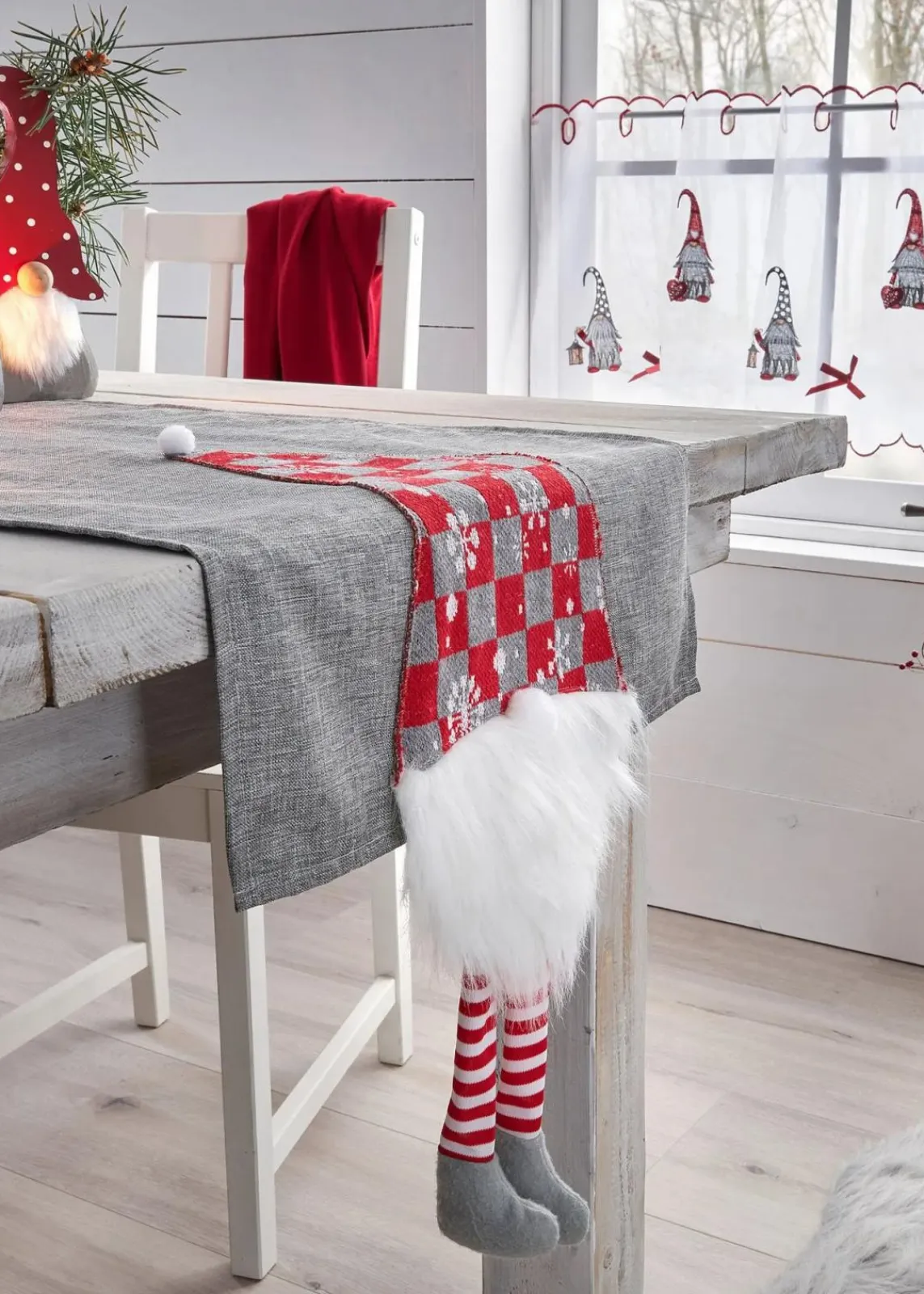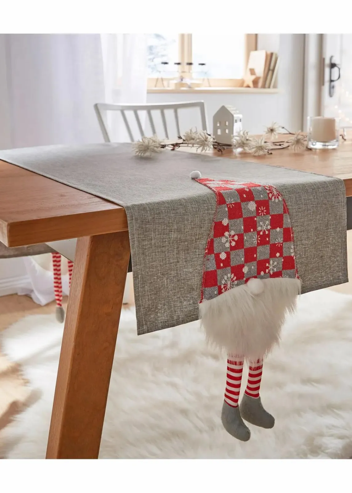 Die lustigen Wichtel-Motive sind liebevoll aufgenäht und mit einigen Applikationen verziert: Ein weißer Zipfelmützen-Pompon, die Knollnase, der Rauschebart und auch die Beinchen aus Plüsch welche keck herunterbaumeln.