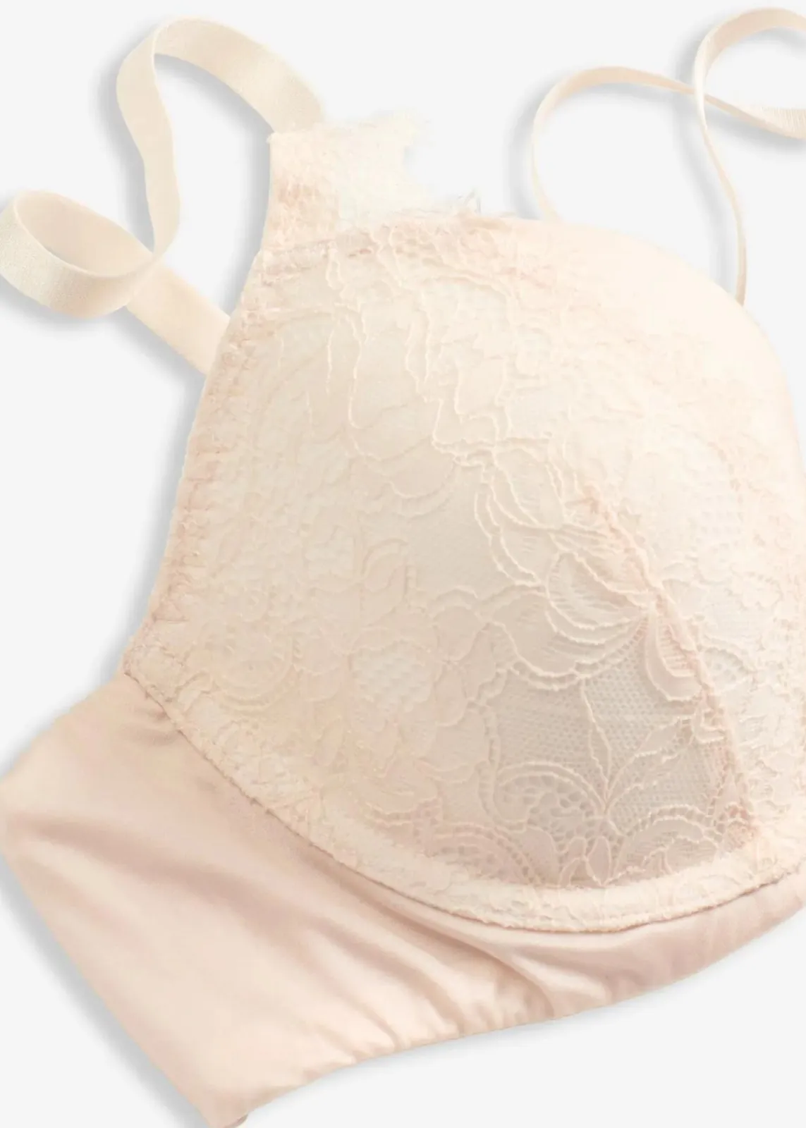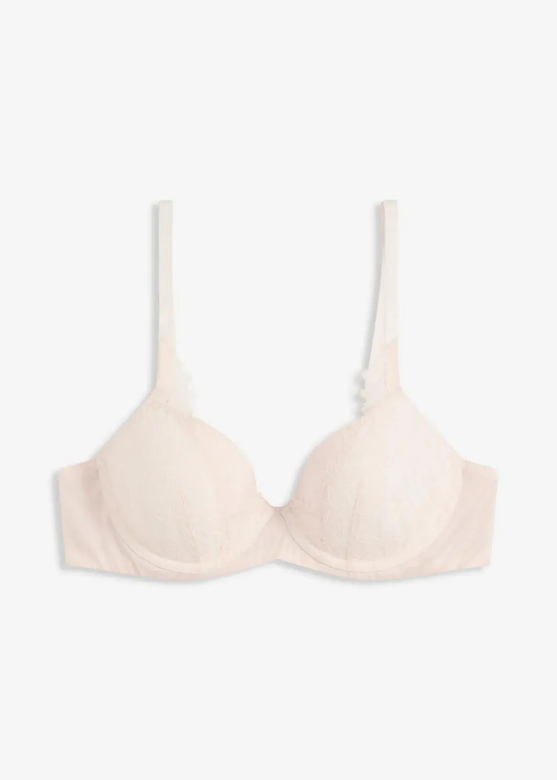 Schalen-BH mit Glanzeffekt und floraler Spitze.
