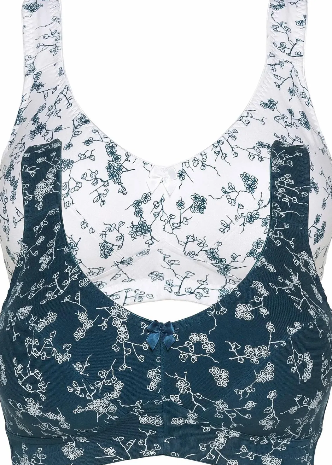 Der BH ohne Bügel bietet mit seiner schönen Bio-Baumwollqualität angenehmen Tragekomfort. Das weiche Material schmiegt sich perfekt an und die leicht gepolsterten Träger entlasten die Schulterpartie.Im attraktiven Doppelpack sind zwei BHs ohne Bügel aus der bpc collection mit einem verspielten Blumendruck enthalten. Dieser ansprechende BH vereint bequemes Tragegefühl und modisches Design.