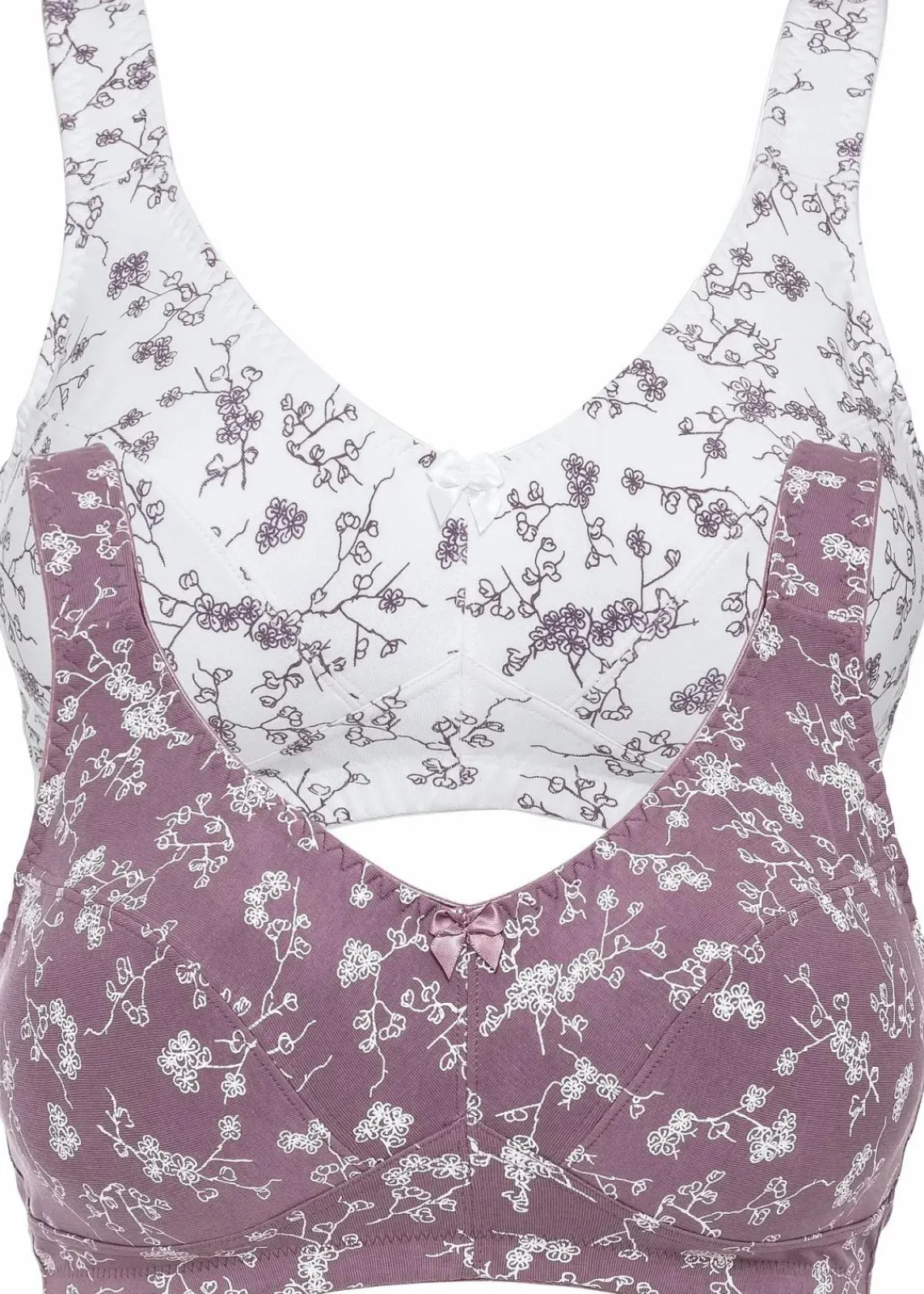 Der BH ohne Bügel bietet mit seiner schönen Bio-Baumwollqualität angenehmen Tragekomfort. Das weiche Material schmiegt sich perfekt an und die leicht gepolsterten Träger entlasten die Schulterpartie.Im attraktiven Doppelpack sind zwei BHs ohne Bügel aus der bpc collection mit einem verspielten Blumendruck enthalten. Dieser ansprechende BH vereint bequemes Tragegefühl und modisches Design.