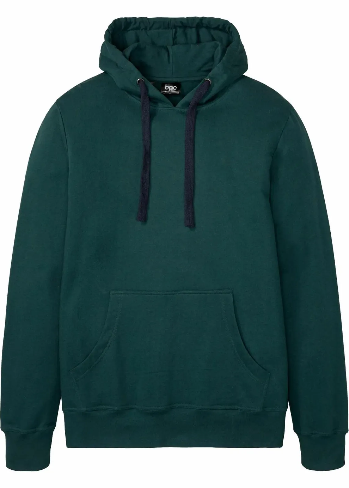 Modernes Basic Kapuzensweatshirt mit kontrastfarbenen Kordelzügen, innen weich angeraut. Mit gerippten Bündchen und aufgesetzter Tasche