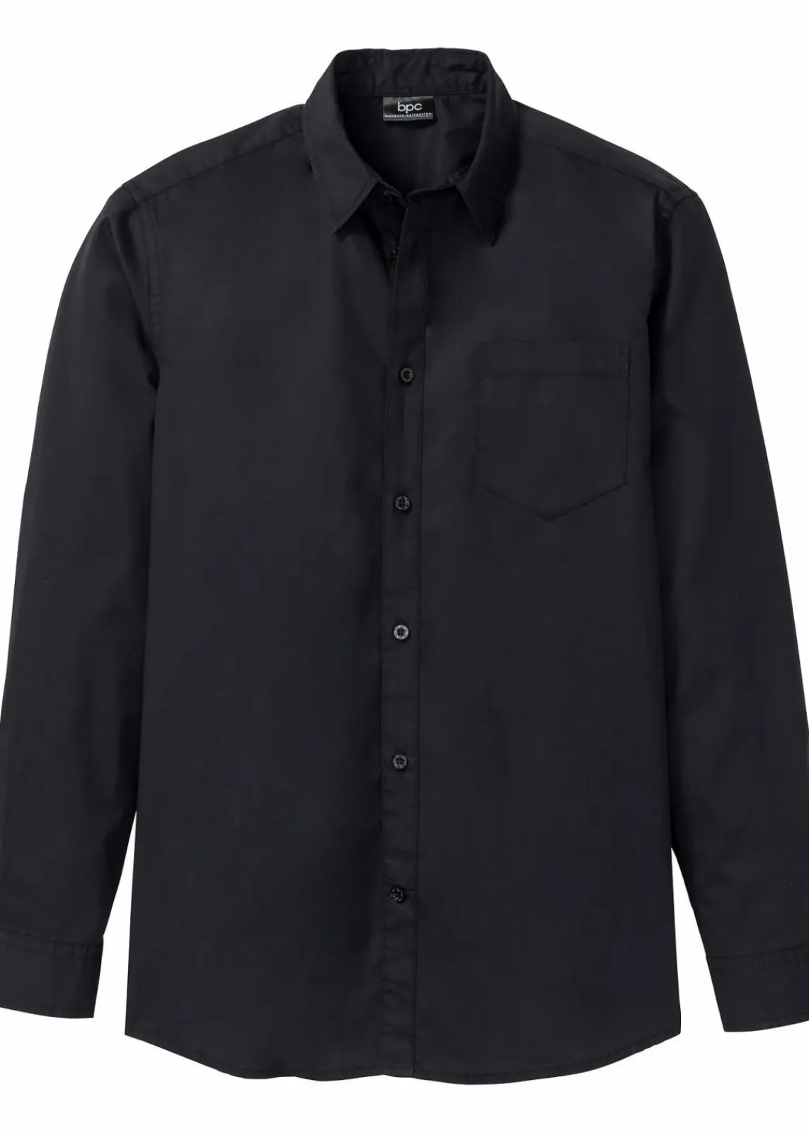 Hemd aus glattem Baumwoll-Webstoff, aufgesetzter Brusttasche und abgerundeter Saum.