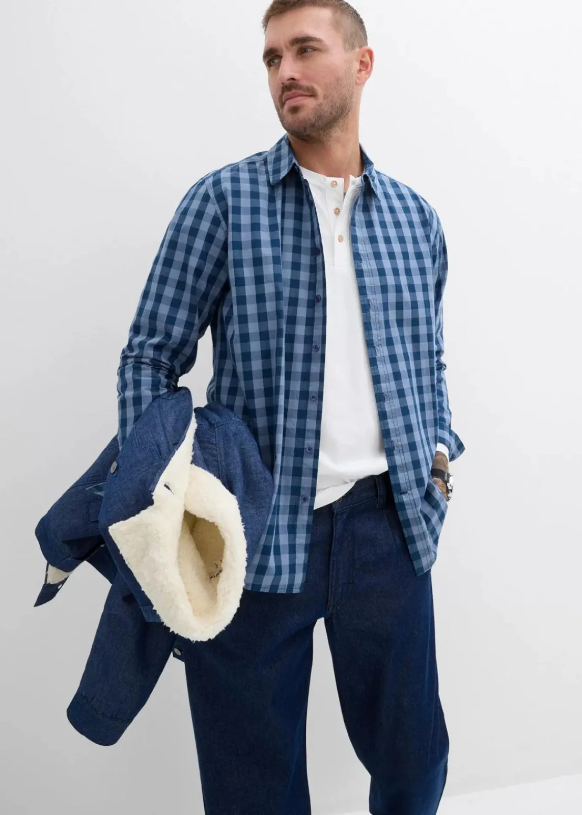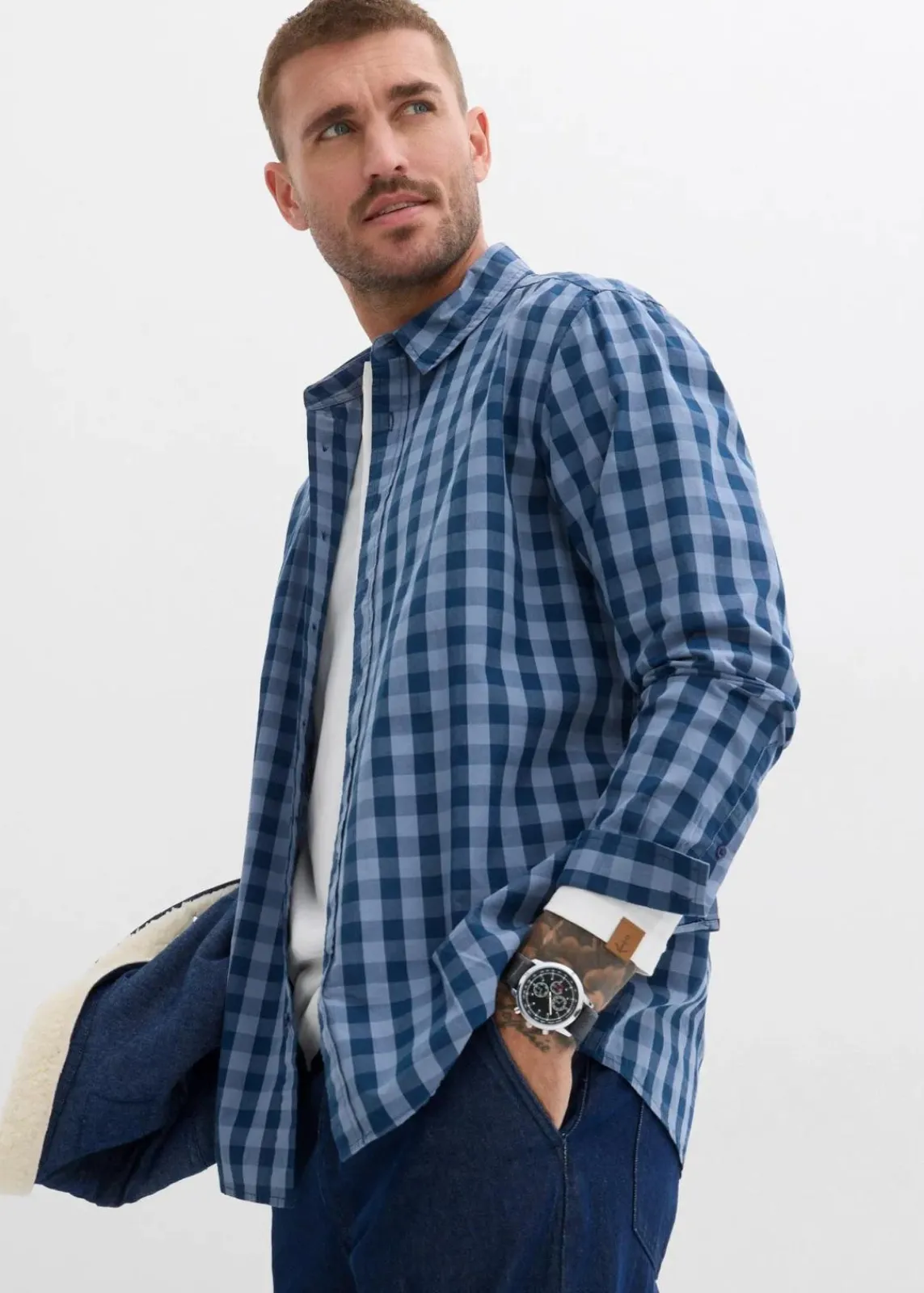 modernes Langarmhemd in Karo-Optik aus hautfreundlicher reiner Bio-Baumwolle