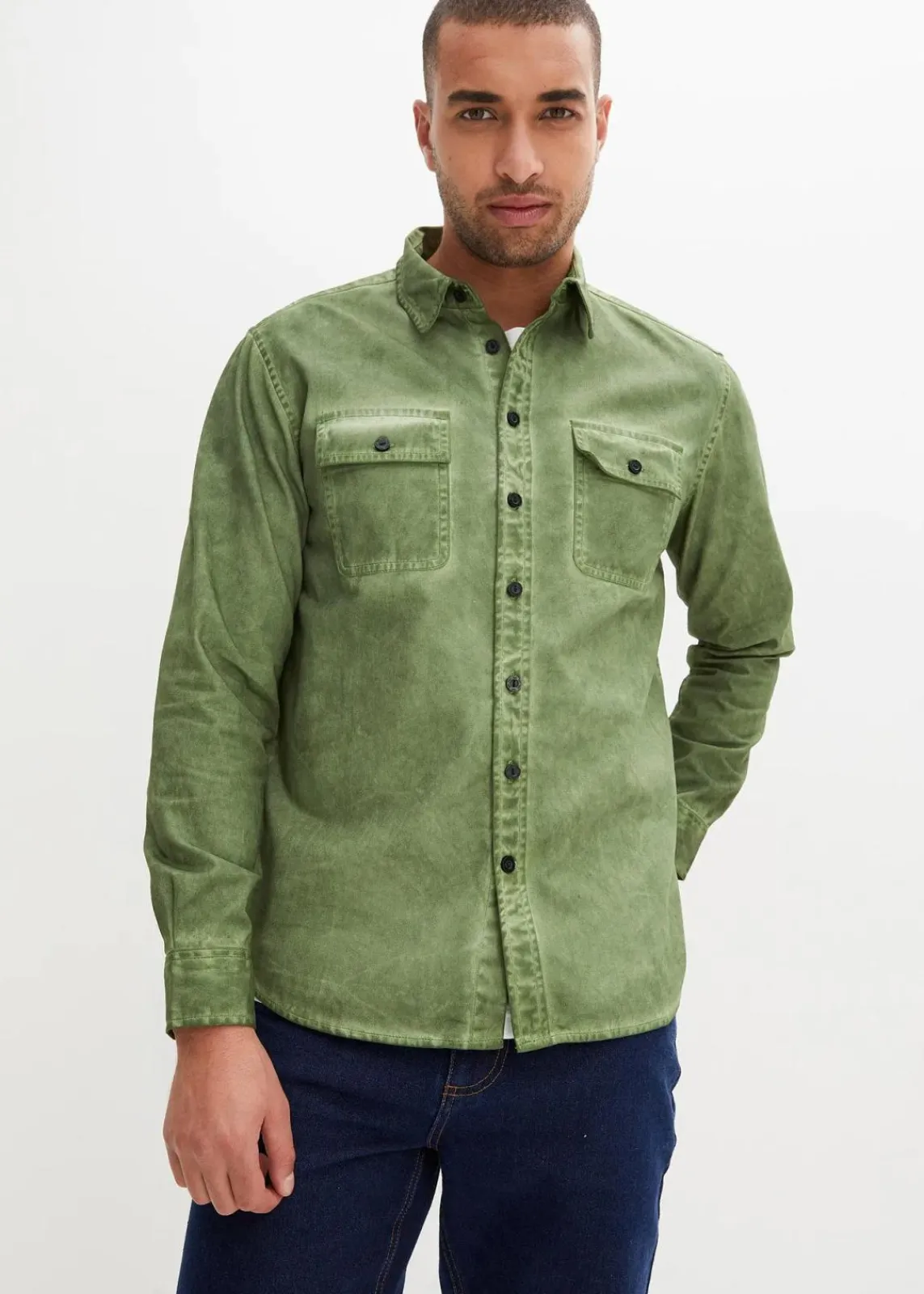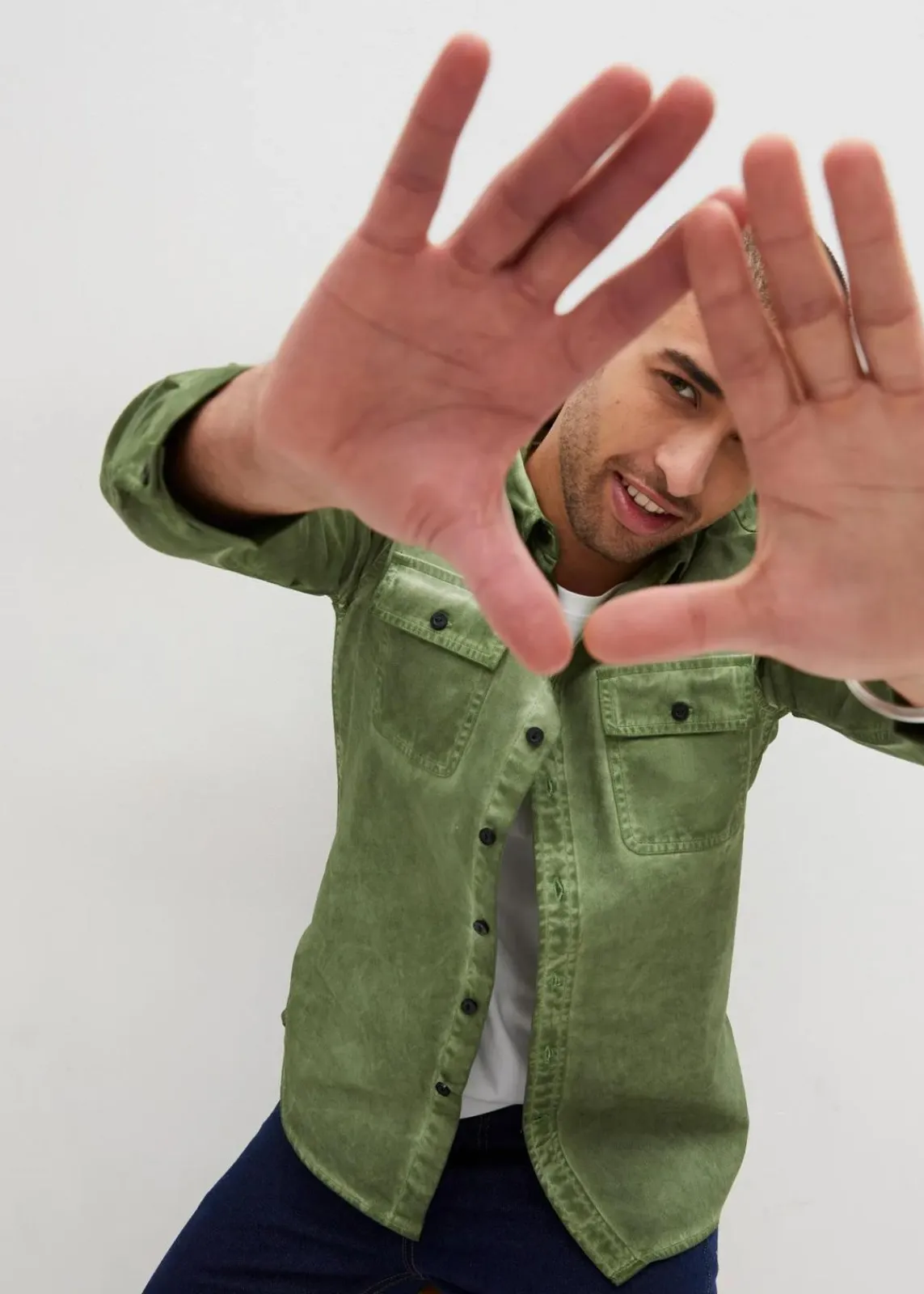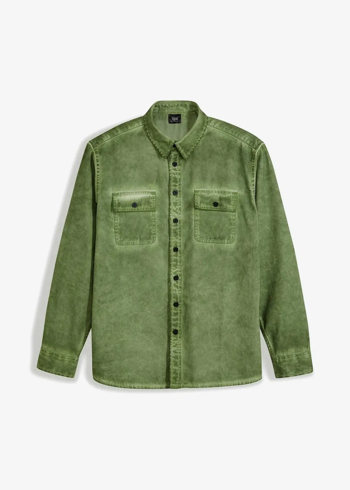 Schönes Langarmhemd mit rundem Saum und einer Brusttasche, jedes Teil ein Unikat.