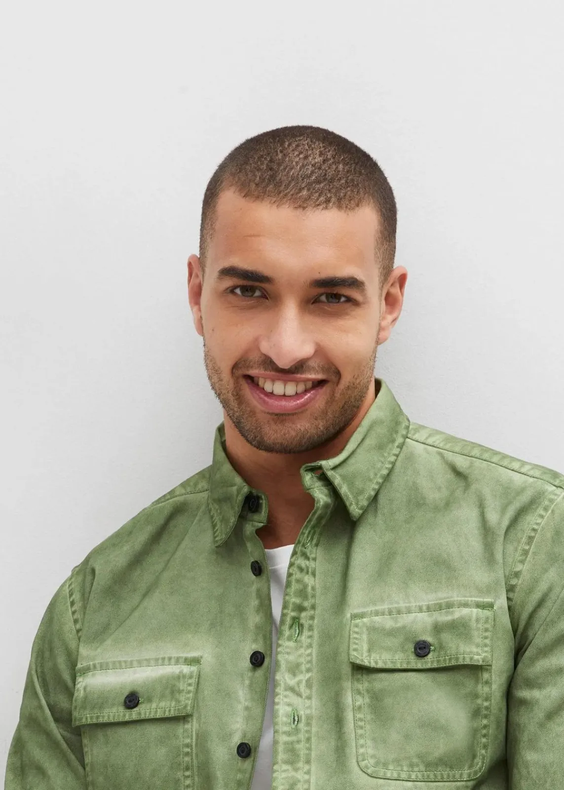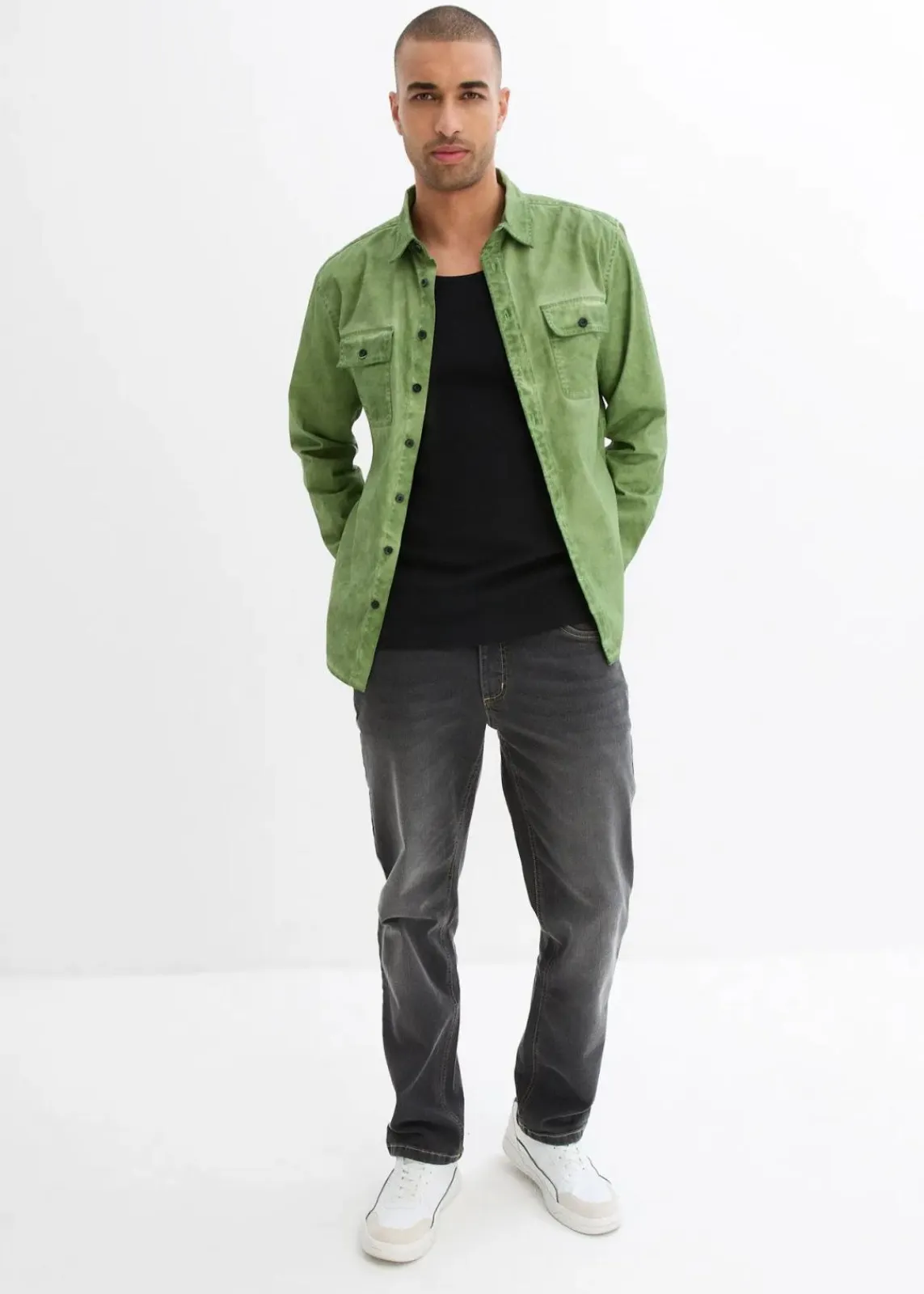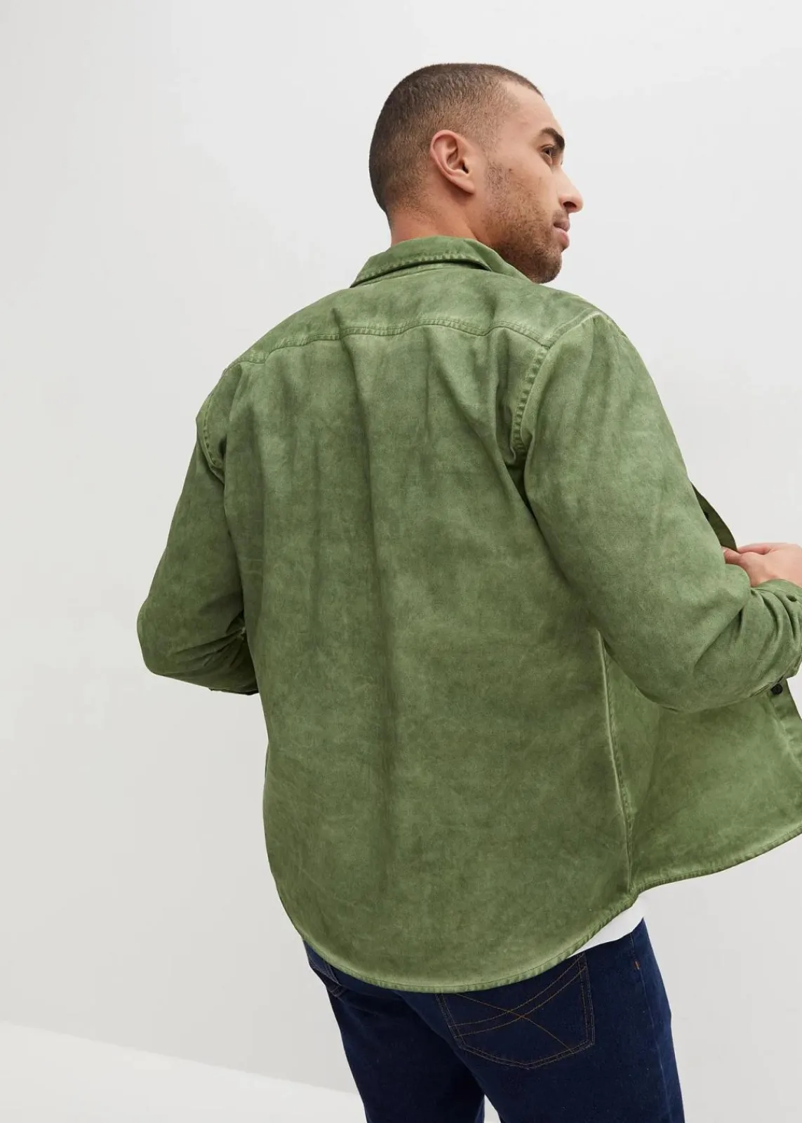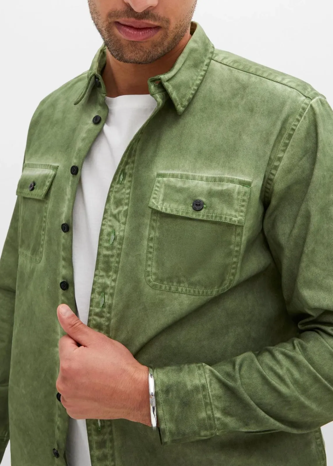 Schönes Langarmhemd mit rundem Saum und einer Brusttasche, jedes Teil ein Unikat.