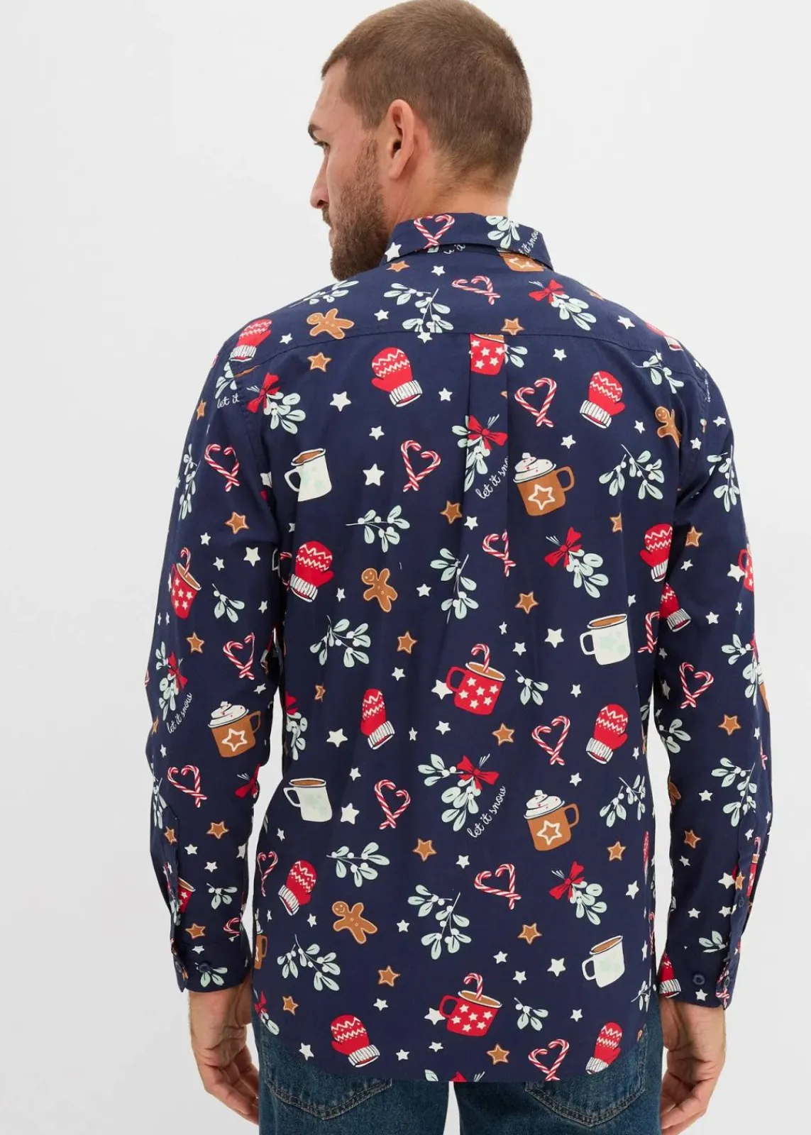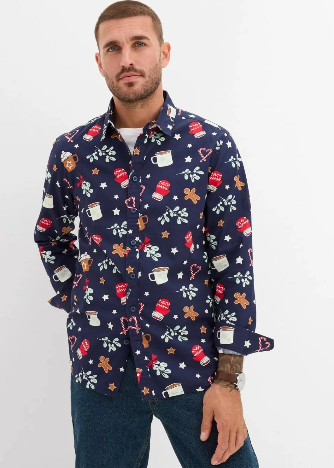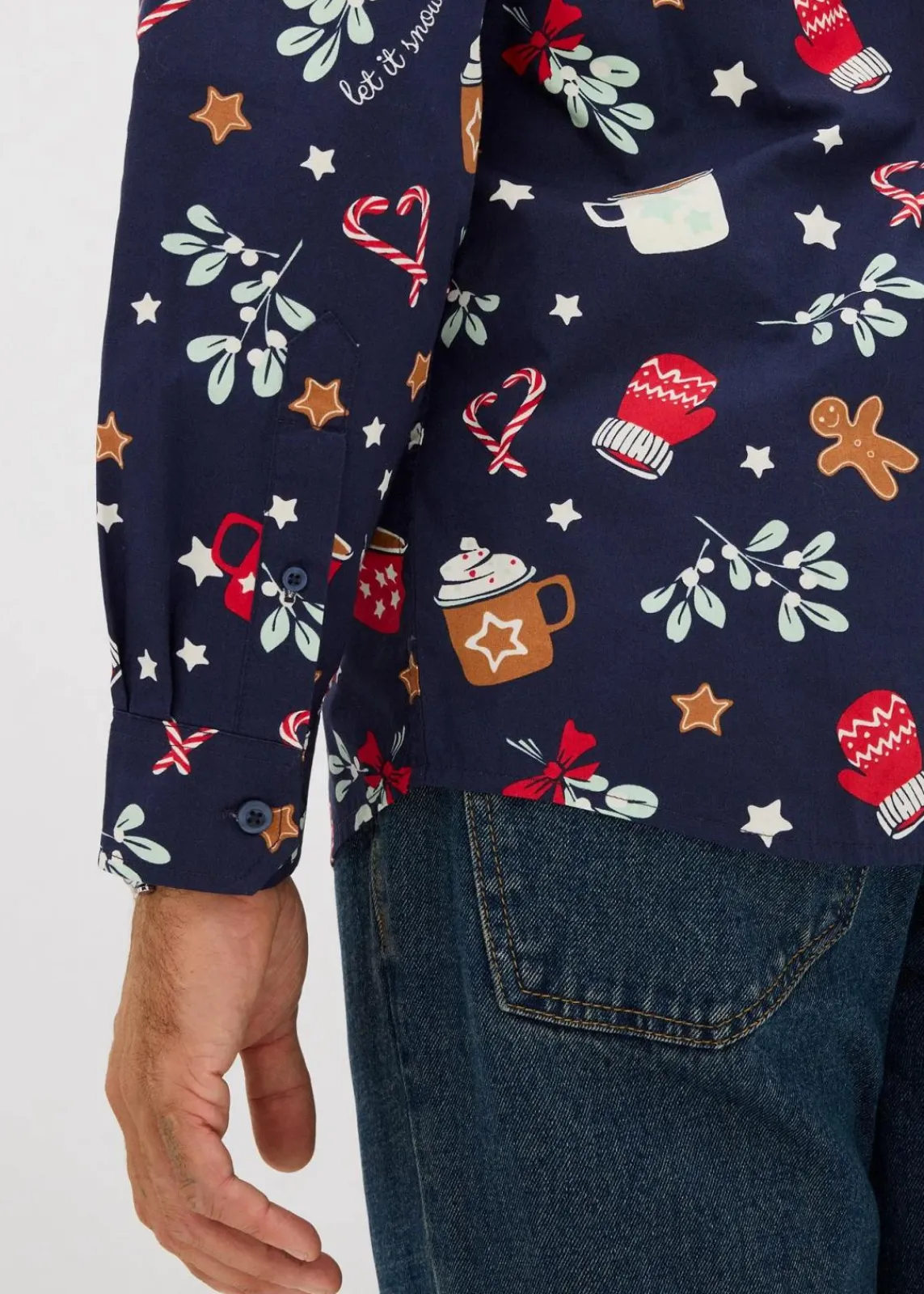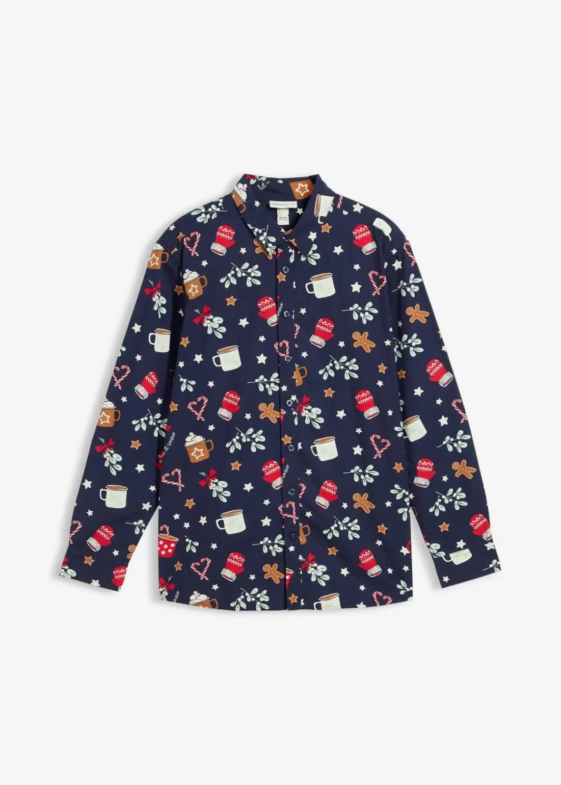 Weihnachts-Hemd aus glattem Webstoff mit Santa-Print und abgerundetem Saum.