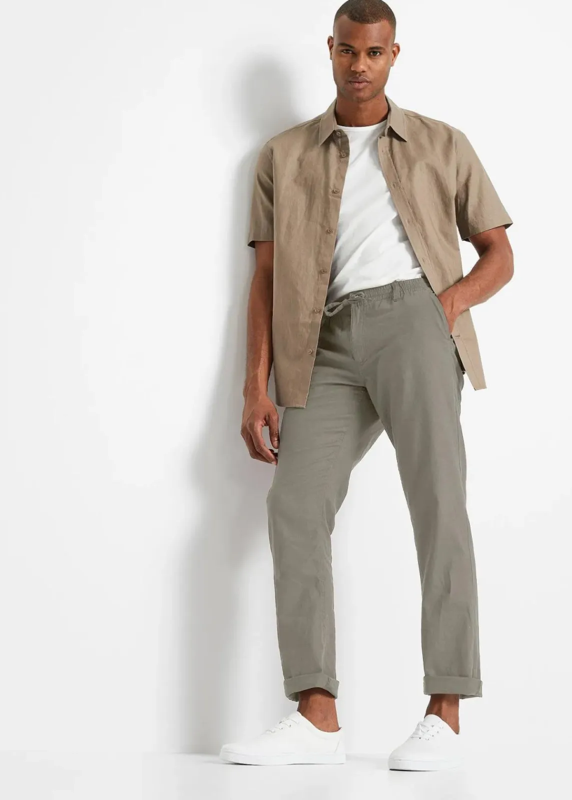 Diese Chinohose von bonprix ist Dein perfekter Begleiter für einen lässigen Look, da sie durch ihren Gummibund und das zusätzliche Bindeband optimalen Tragekomfort bietet. Du wirst die hochwertige Materialkombination aus 55% Leinen und 45% Baumwolle an warmen Tagen zu schätzen wissen. Die Chinohose unterstützt die „Cotton made in Africa Initiative“ und fördert damit soziale Initiativen. Für Deine Wertsachen bieten die vier Taschen ausreichend Platz. Kombiniere die Hose mit einem T-Shirt oder einem Hemd und sei perfekt gekleidet für entspannte Tage.