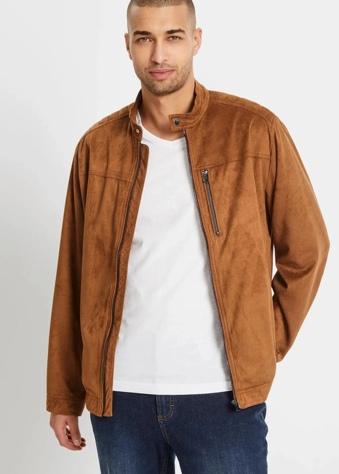 Coole Bikerjacke im lässigen Look mit Stehkragen, markanten Schulterpatches,und angesagten Metall-Accessoires